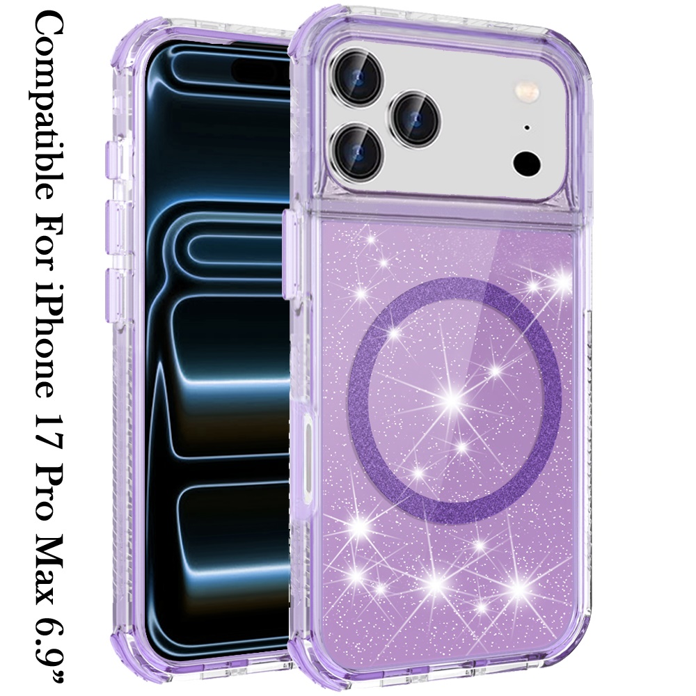 For iPhone 17 Pro Max Magnetic Ring Glitter 3in1 Hybrid Case Cover - Purple