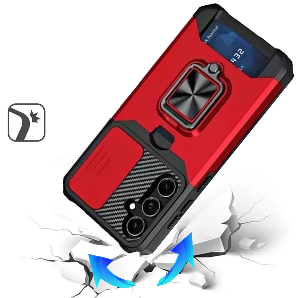 For Samsung s25 FE Multi-Functional Card Magnetic Ring Stand Hybrid Camera Case Cover - Red