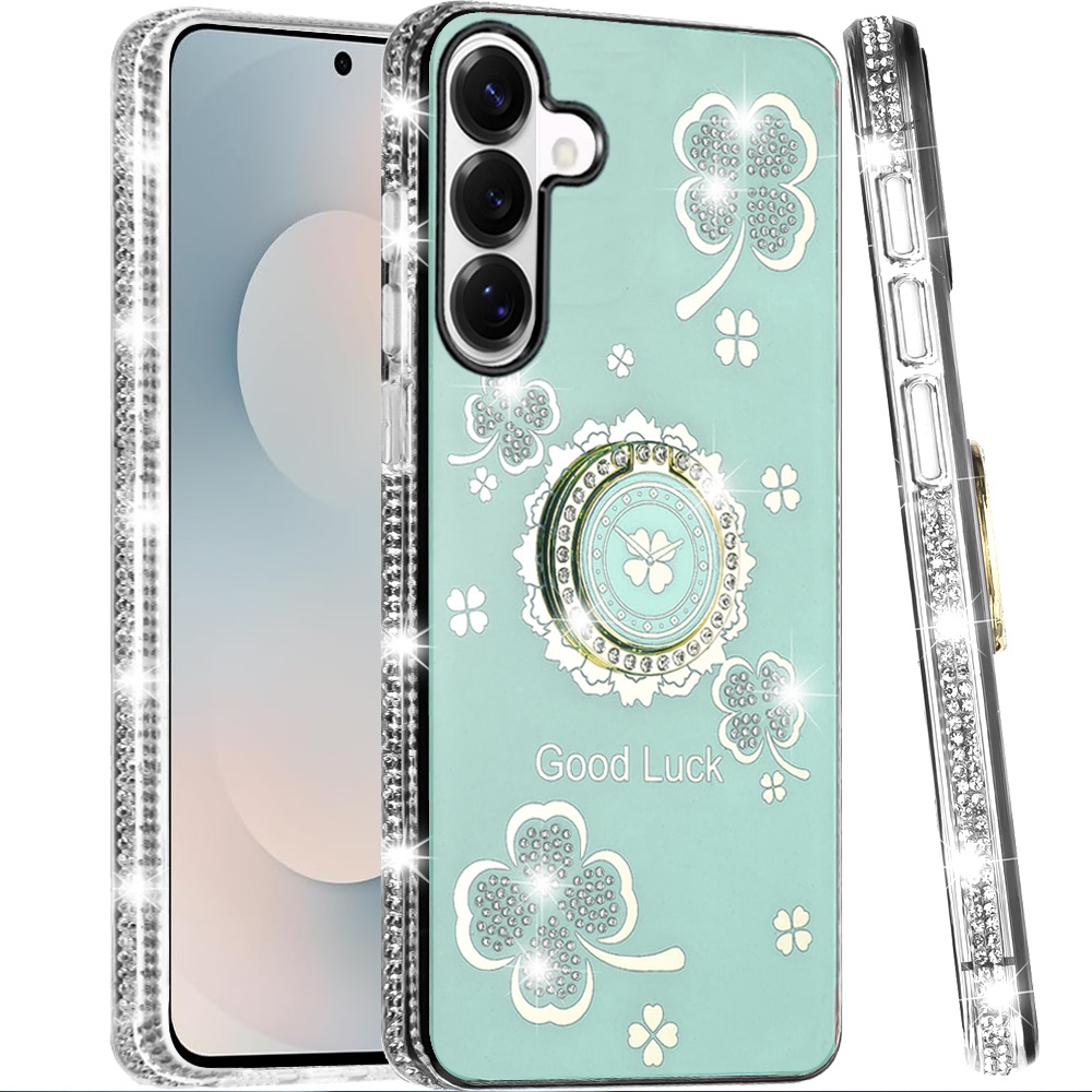 For Samsung s25 FE Splendid Glitter with Diamonds All Around Edges Ring Stand Case Cover - Teal