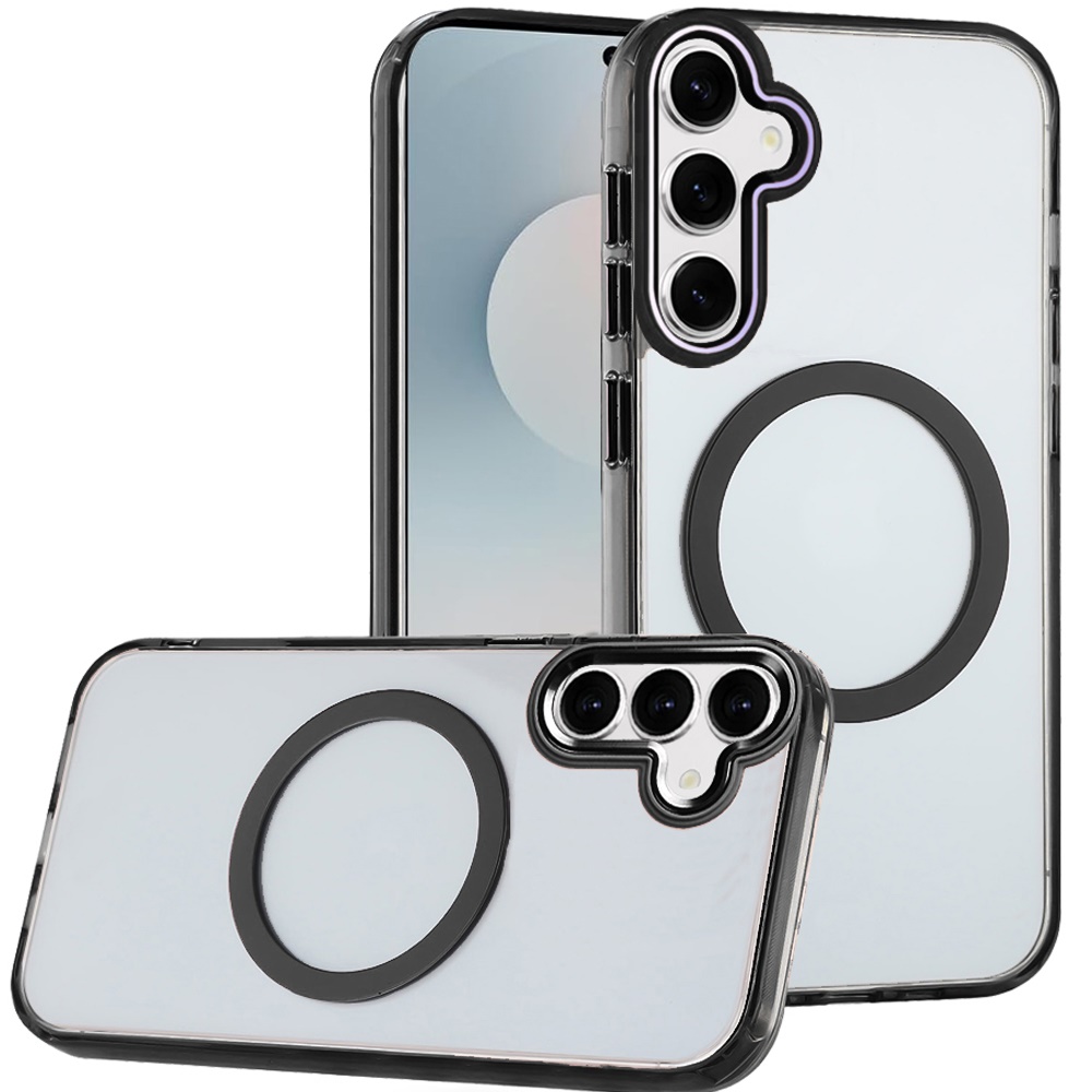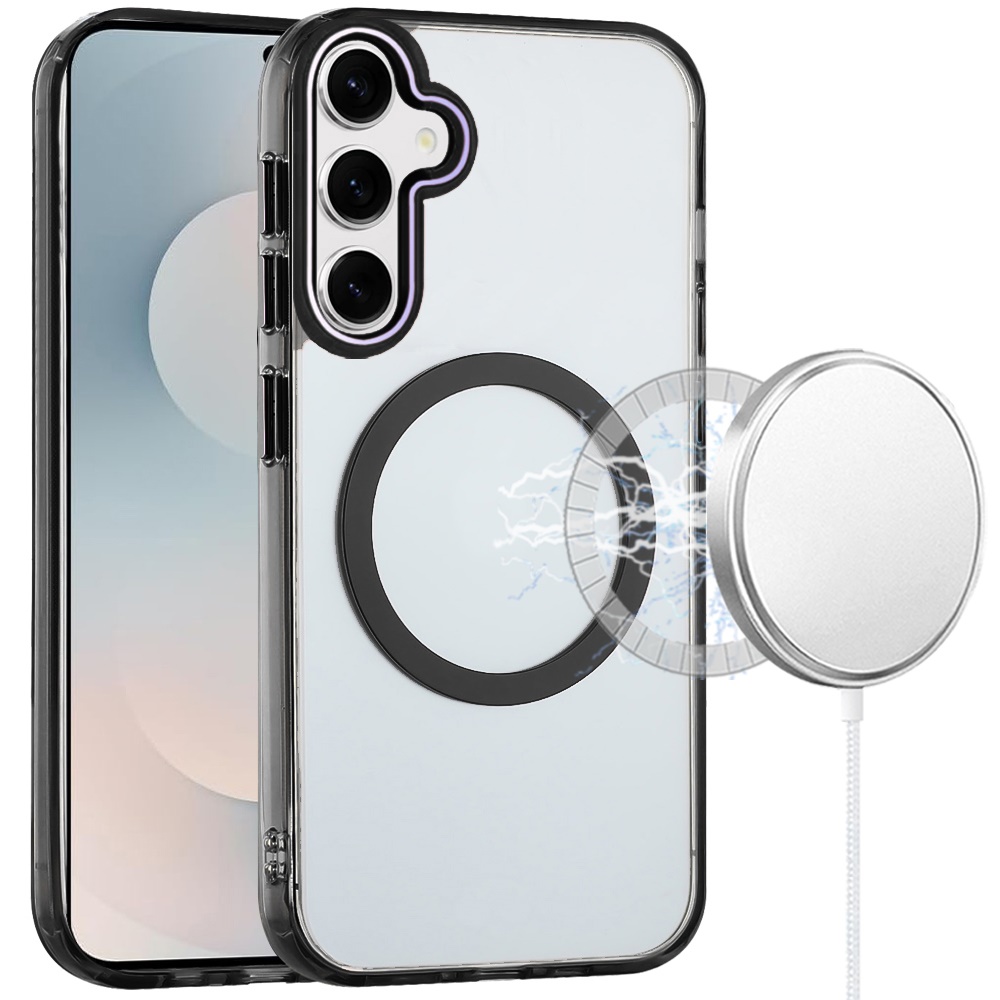 For Samsung s25 FE Magnetic Circle Ring Transparent Premium Acrylic with Metal Buttons & Camera Raised Lip - Black