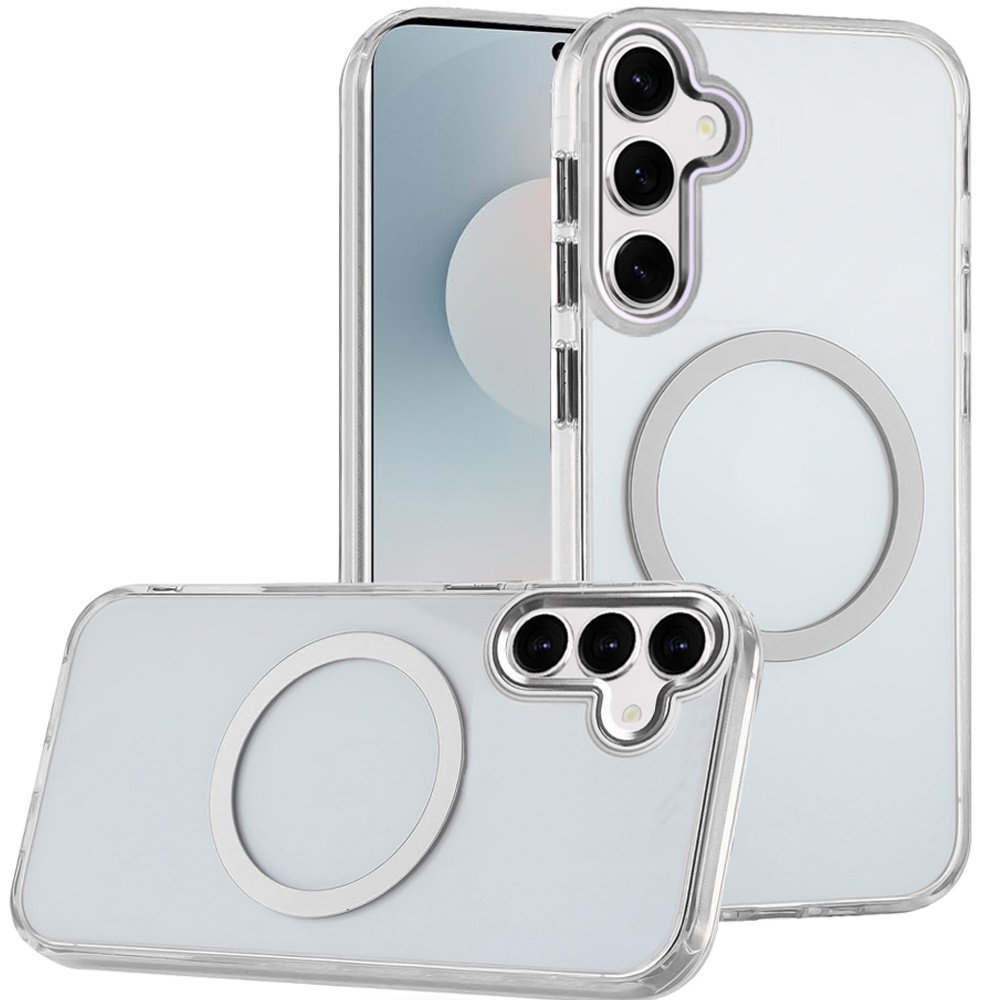 For Samsung s25 FE Magnetic Circle Ring Transparent Premium Acrylic with Metal Buttons & Camera Raised Lip - Clear
