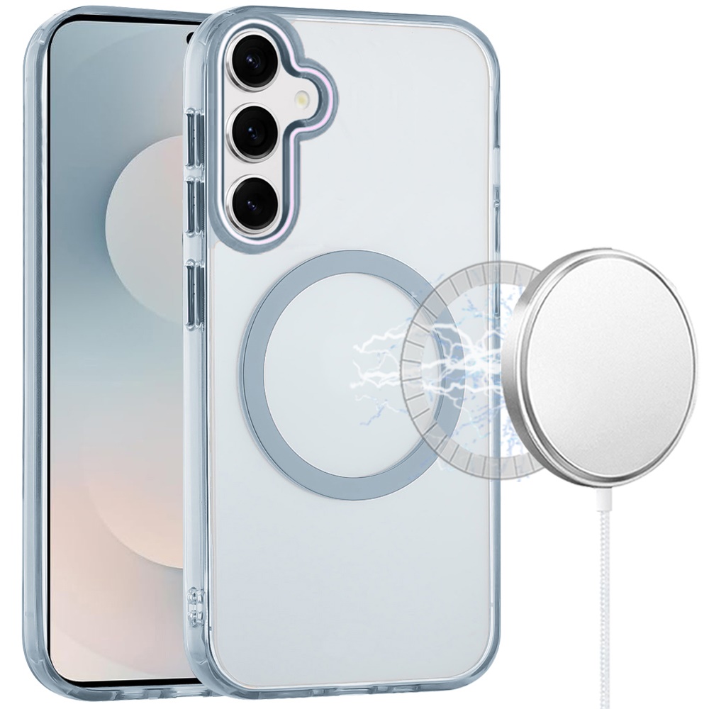 For Samsung s25 FE Magnetic Circle Ring Transparent Premium Acrylic with Metal Buttons & Camera Raised Lip - Light Blue