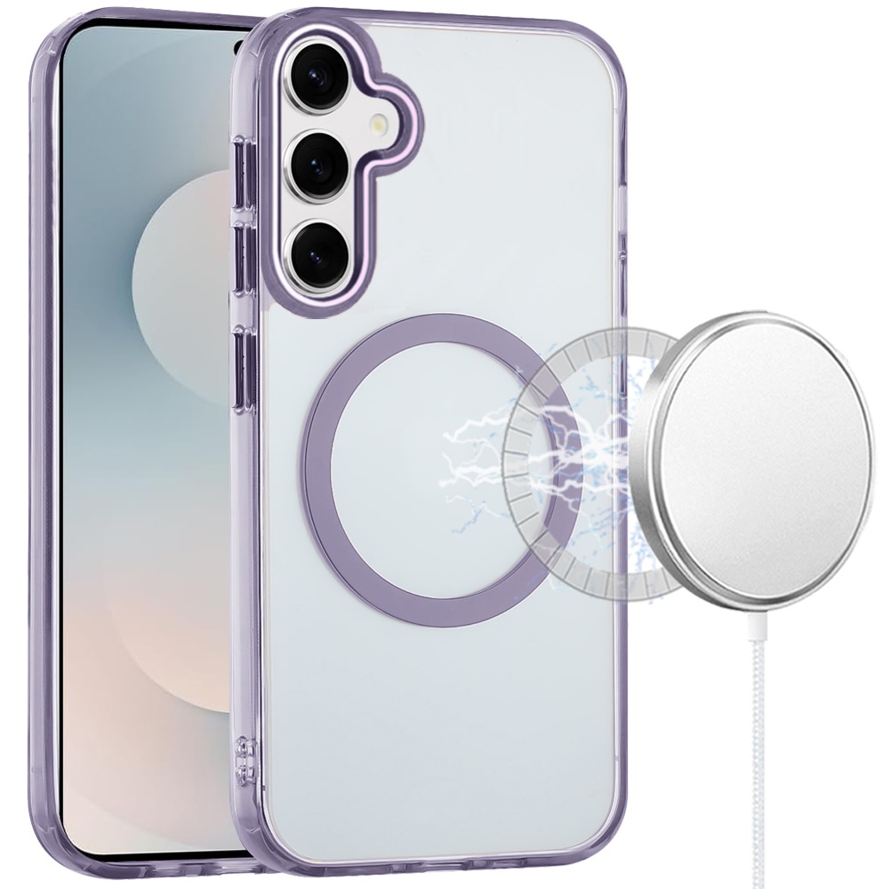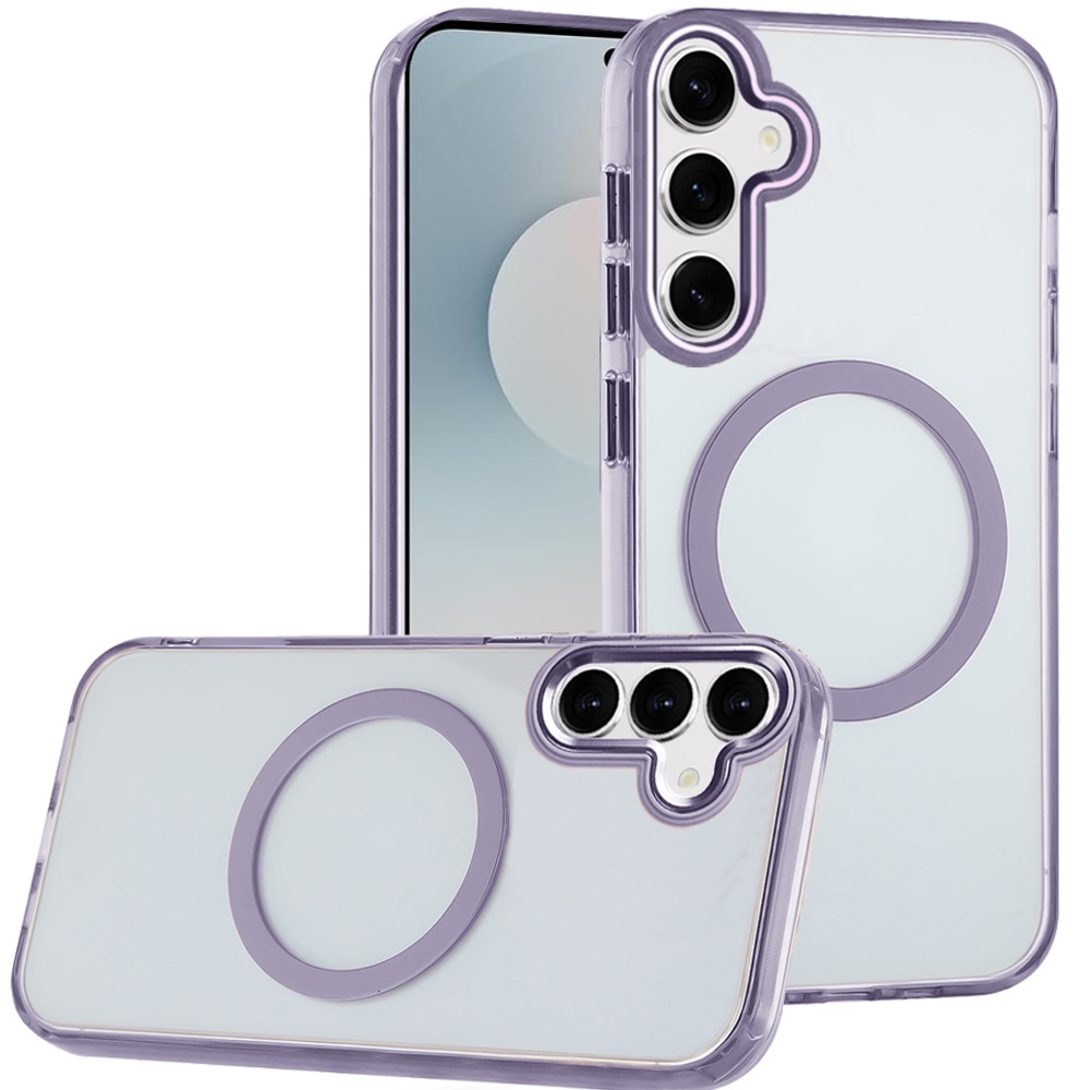 For Samsung s25 FE Magnetic Circle Ring Transparent Premium Acrylic with Metal Buttons & Camera Raised Lip - Light Purple