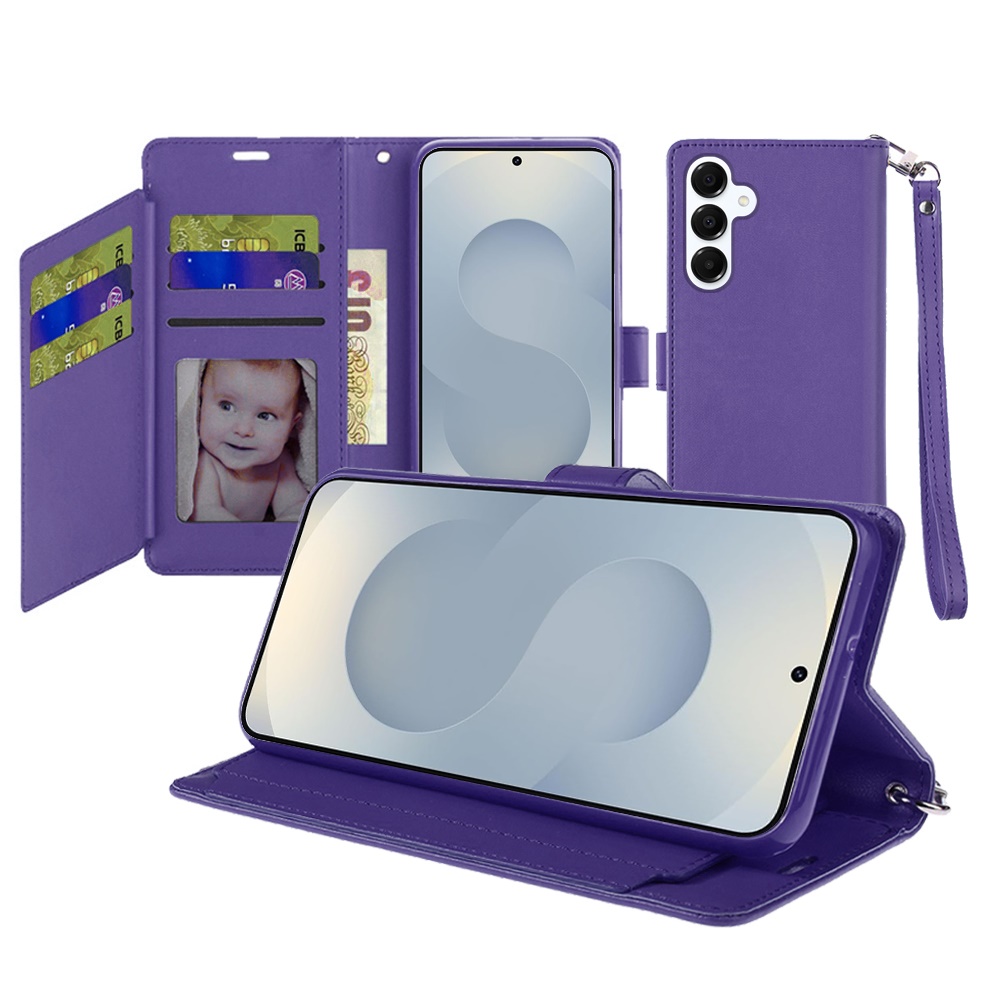 For Samsung s25 FE Wallet ID Card Holder Case Cover - Dark Purple