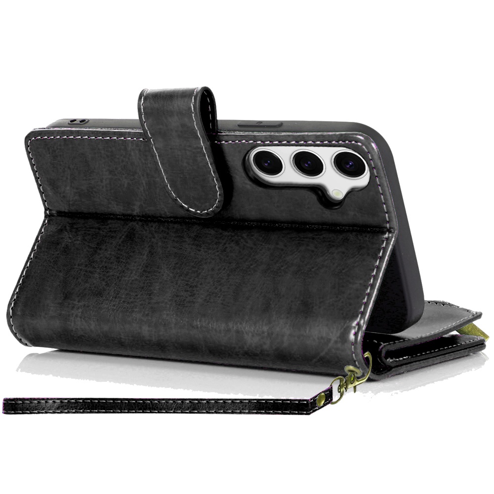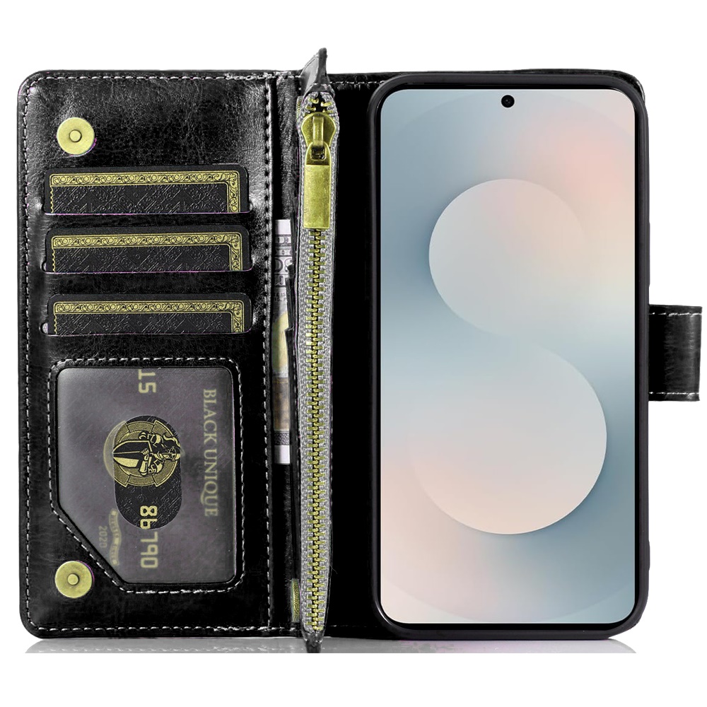 For Samsung s25 FE Luxury Wallet Card ID Zipper Money Holder Case Cover - Black