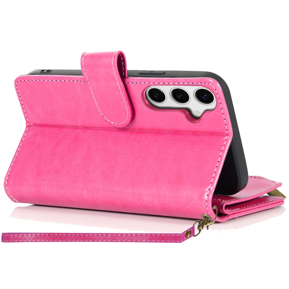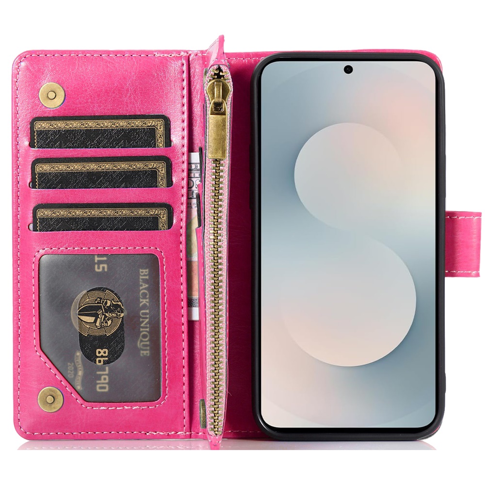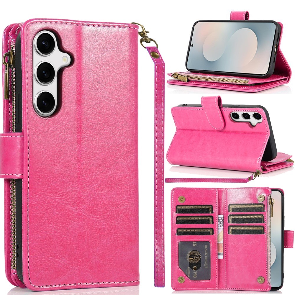 For Samsung s25 FE Luxury Wallet Card ID Zipper Money Holder Case Cover - Hot Pink