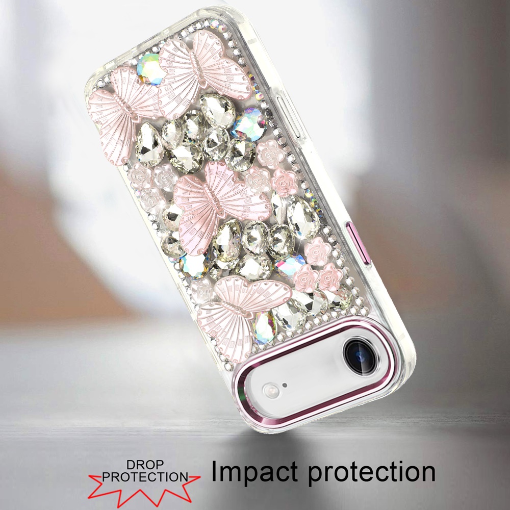 For iPhone 17 Air Lavished Floral Butterfly Bling Stones Hybrid Case - Pink