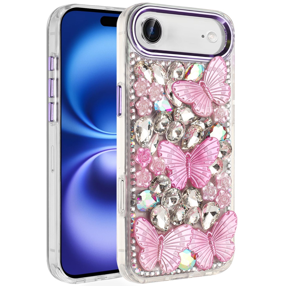 For iPhone 17 Air Lavished Floral Butterfly Bling Stones Hybrid Case - Purple