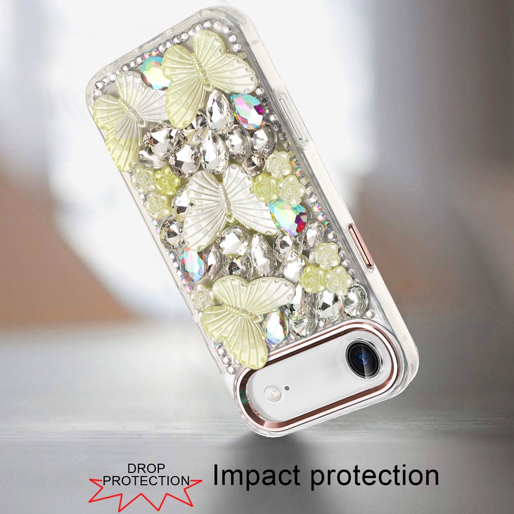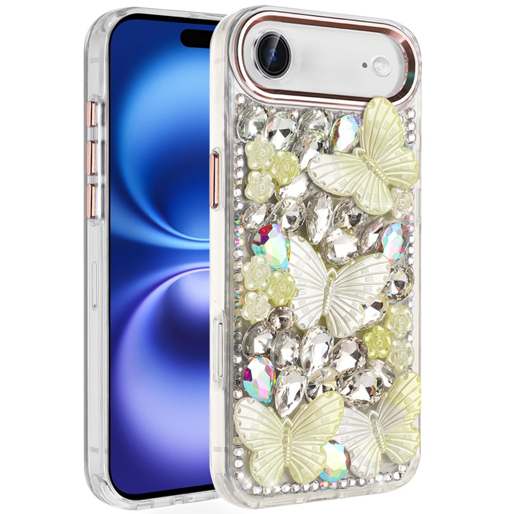 For iPhone 17 Air Lavished Floral Butterfly Bling Stones Hybrid Case - Rose Gold