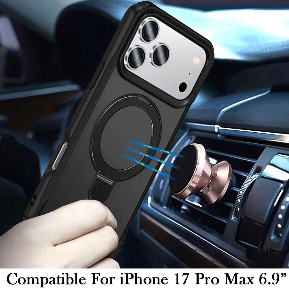 For iPhone 17 Pro Max Matte Finish Simplified Magnetic Ring With Stand Hybrid Case - Black
