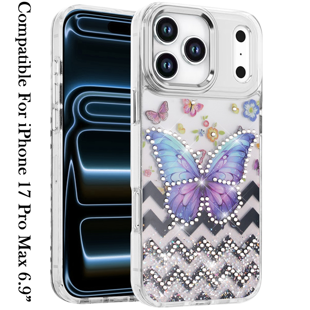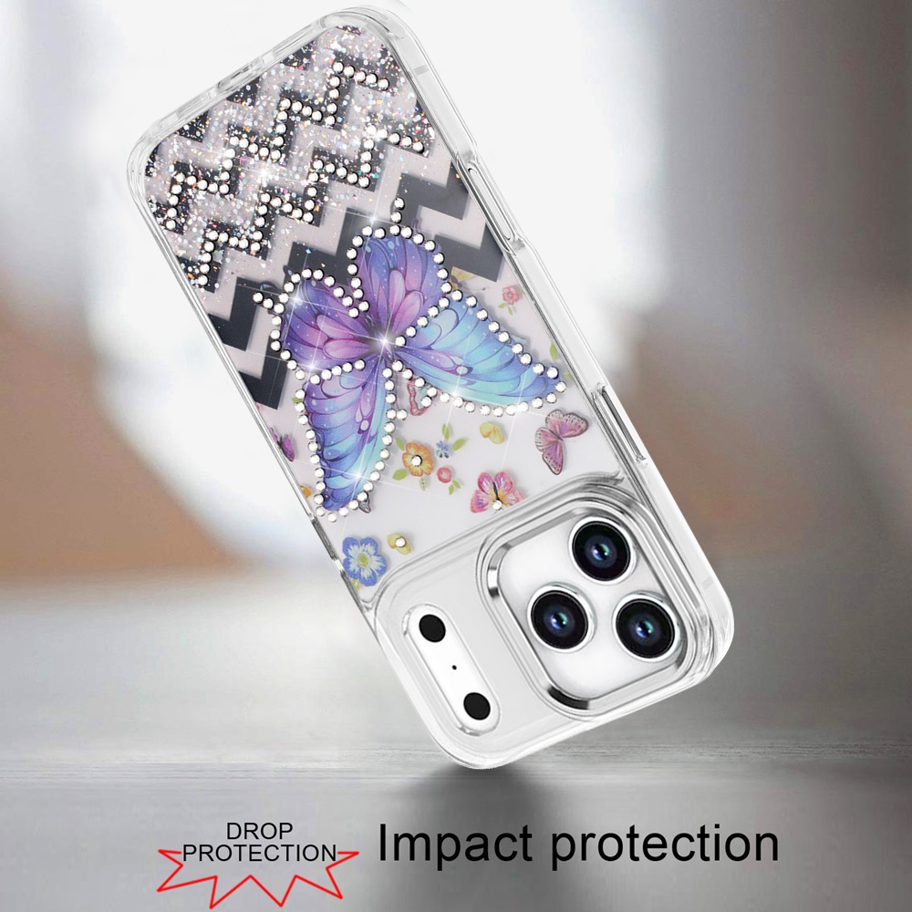 For iPhone 17 Pro Max Resin Epoxy Design Diamond Metal Edged Hybrid Case - A