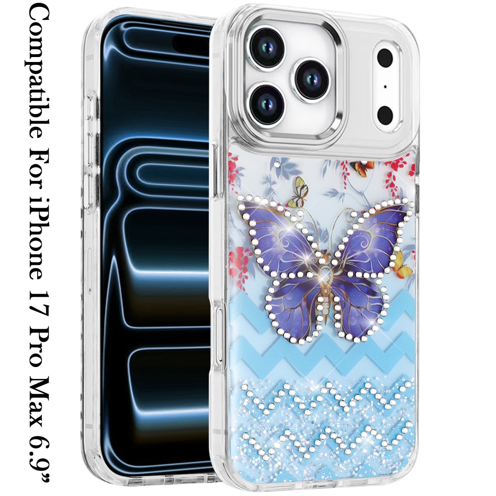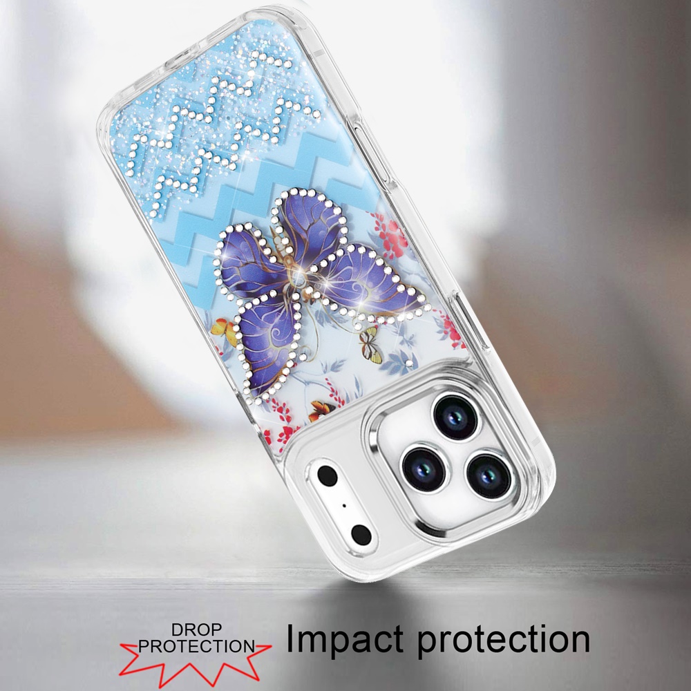 For iPhone 17 Pro Max Resin Epoxy Design Diamond Metal Edged Hybrid Case - D