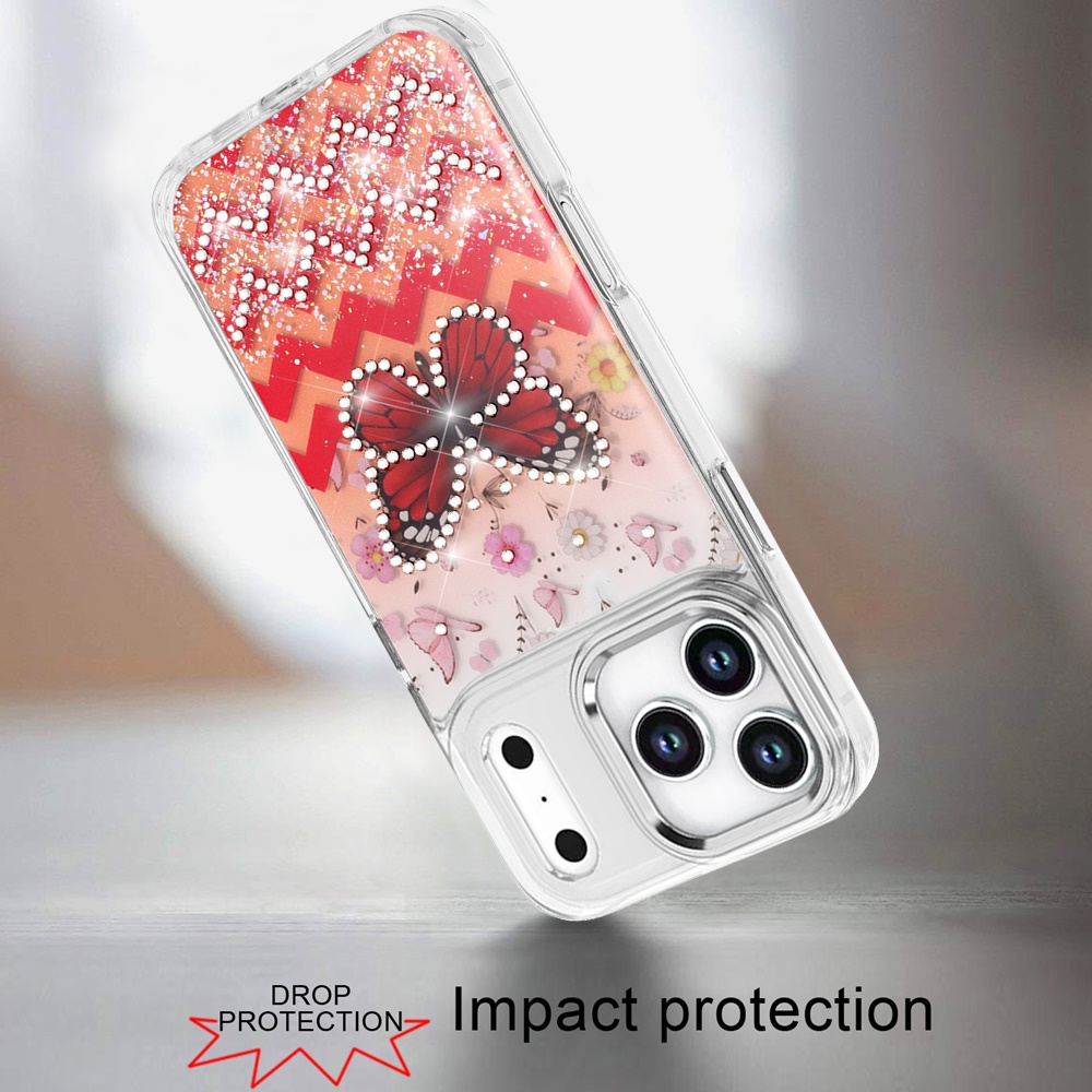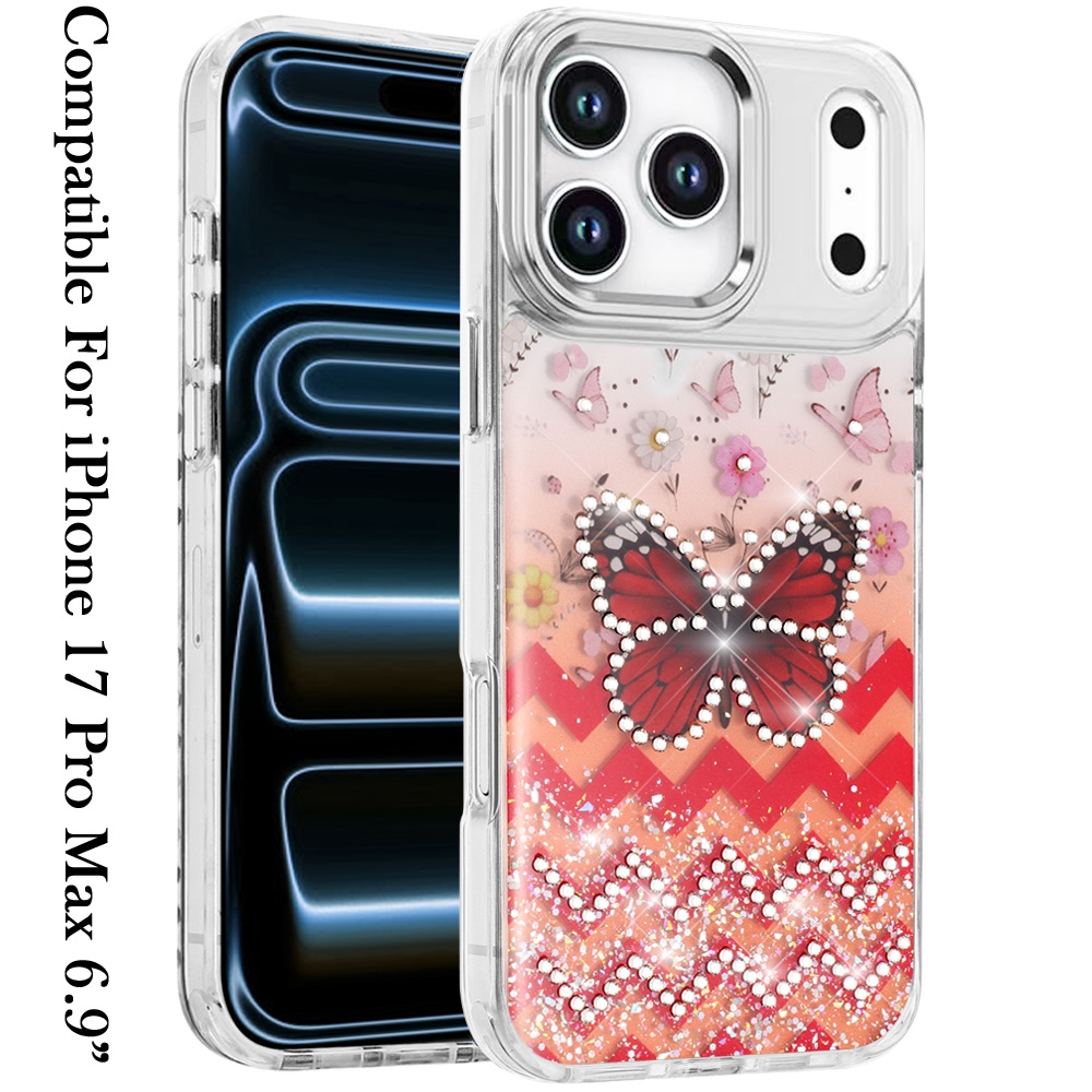 For iPhone 17 Pro Max Resin Epoxy Design Diamond Metal Edged Hybrid Case - F