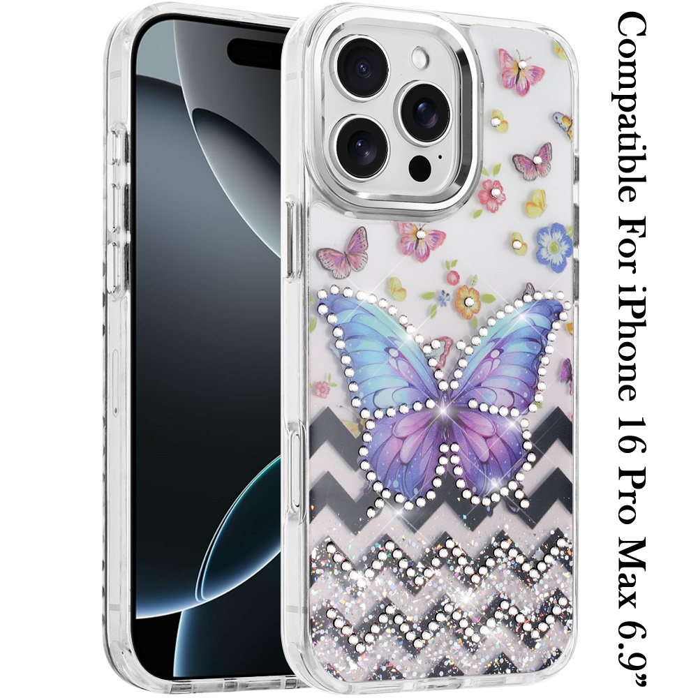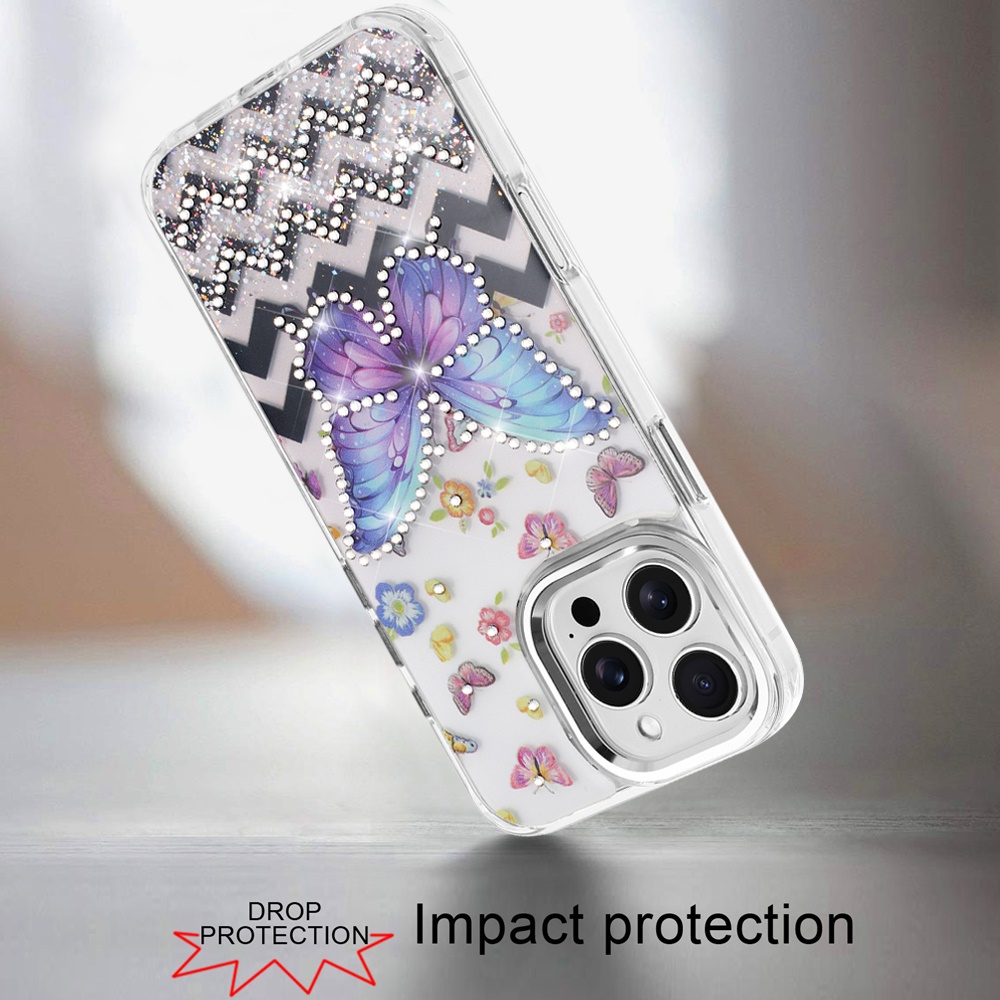 For iPhone 16 Pro Max 6.9 Resin Epoxy Design Diamond Metal Edged Hybrid Case - A