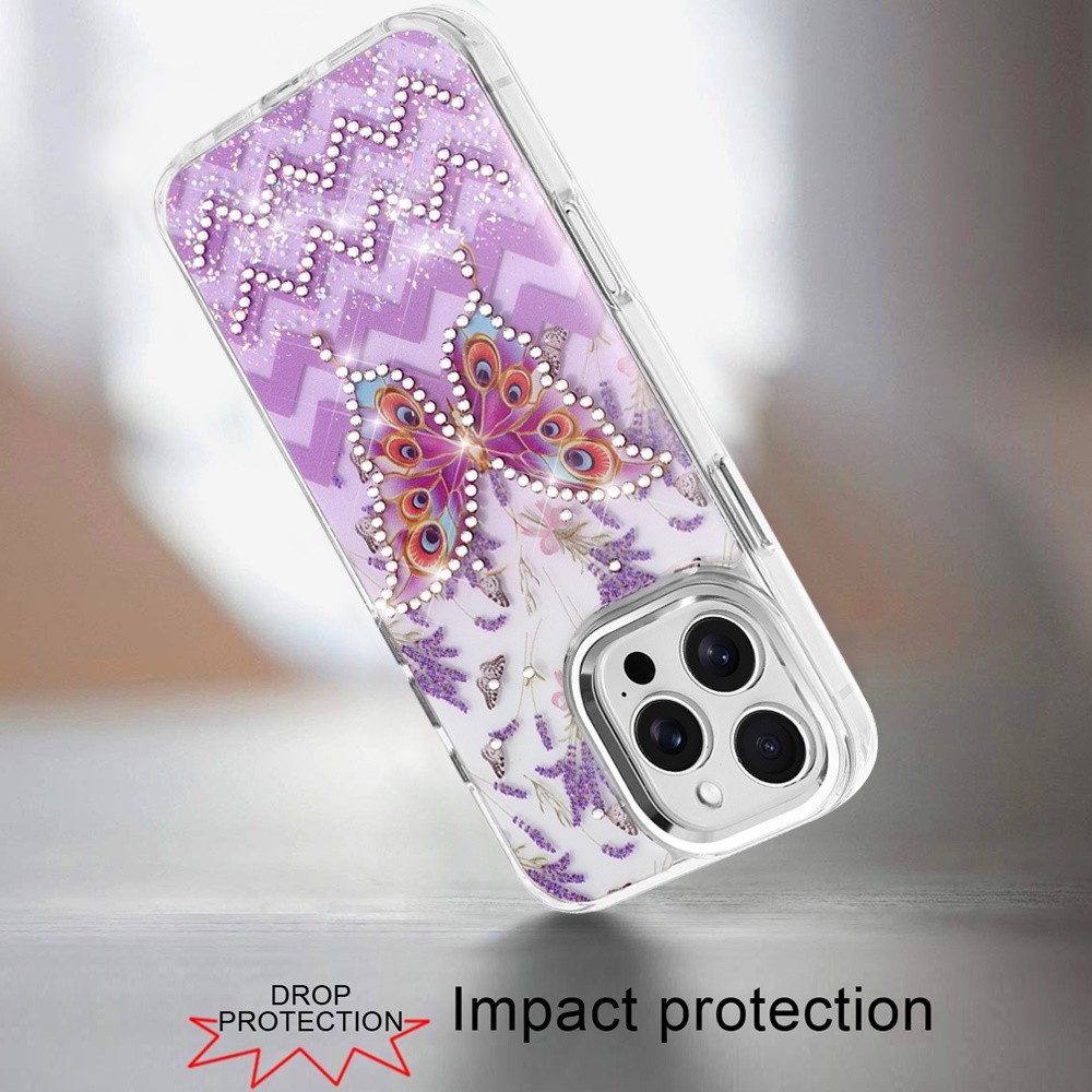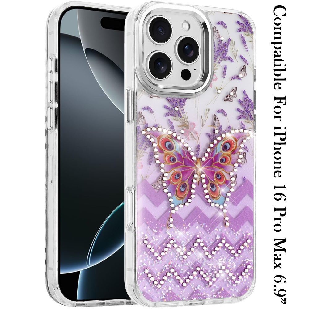 For iPhone 16 Pro Max 6.9 Resin Epoxy Design Diamond Metal Edged Hybrid Case - B