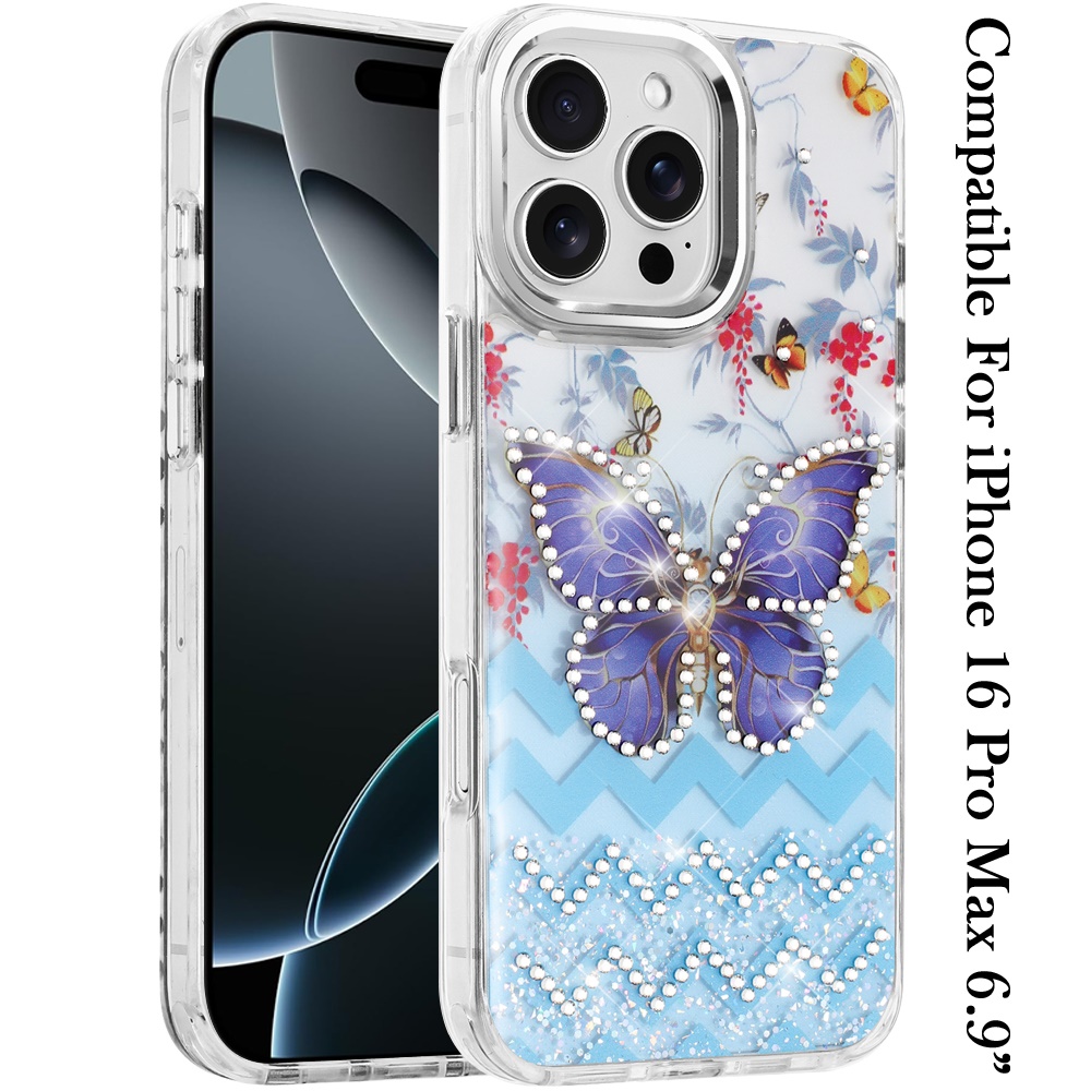 For iPhone 16 Pro Max 6.9 Resin Epoxy Design Diamond Metal Edged Hybrid Case - D