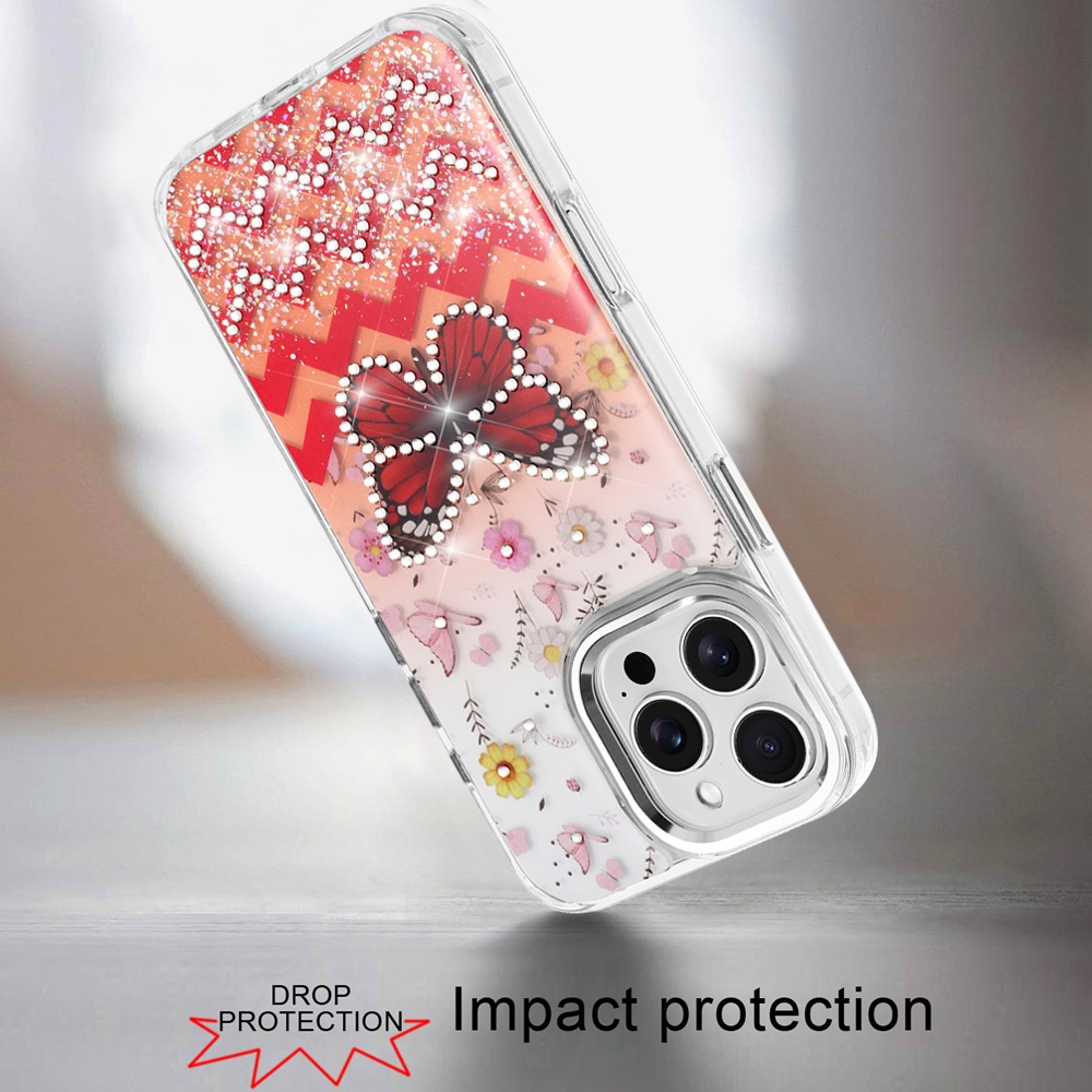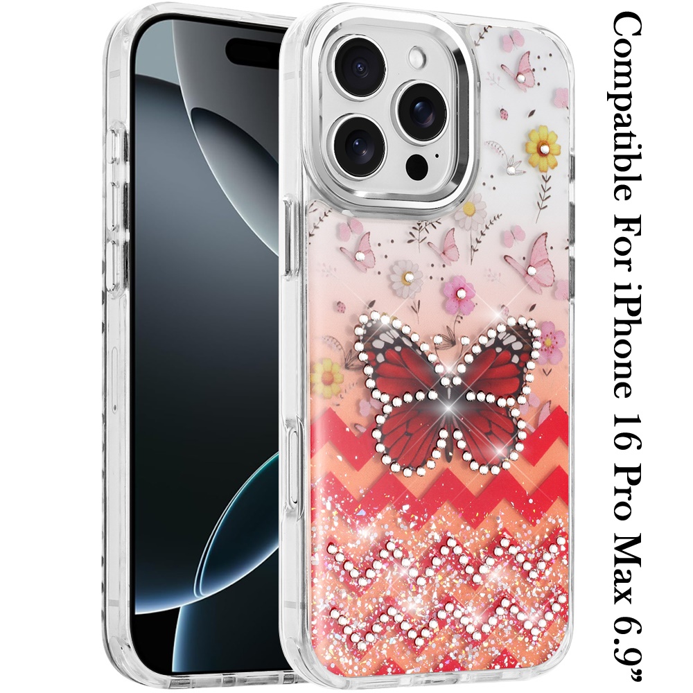 For iPhone 16 Pro Max 6.9 Resin Epoxy Design Diamond Metal Edged Hybrid Case - F