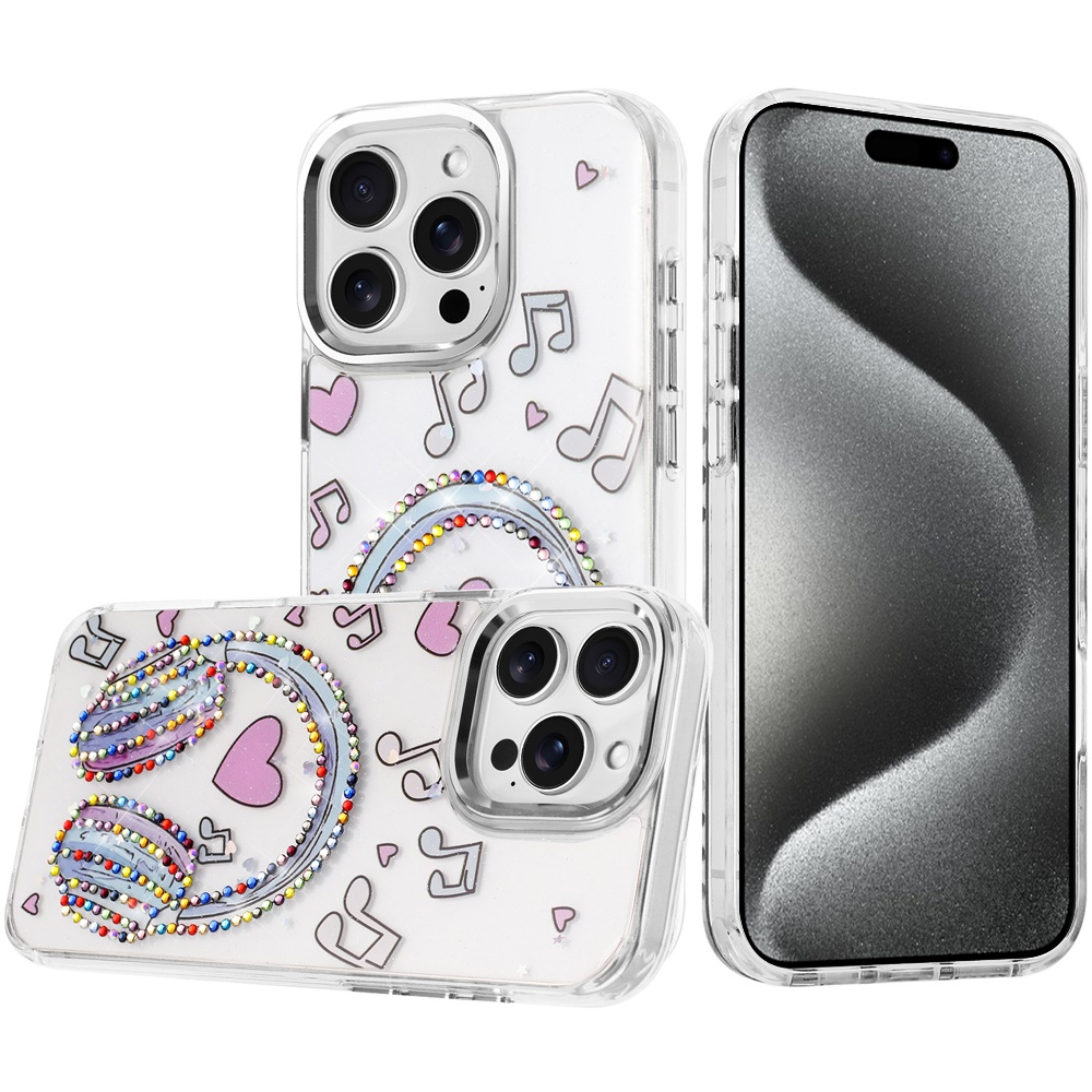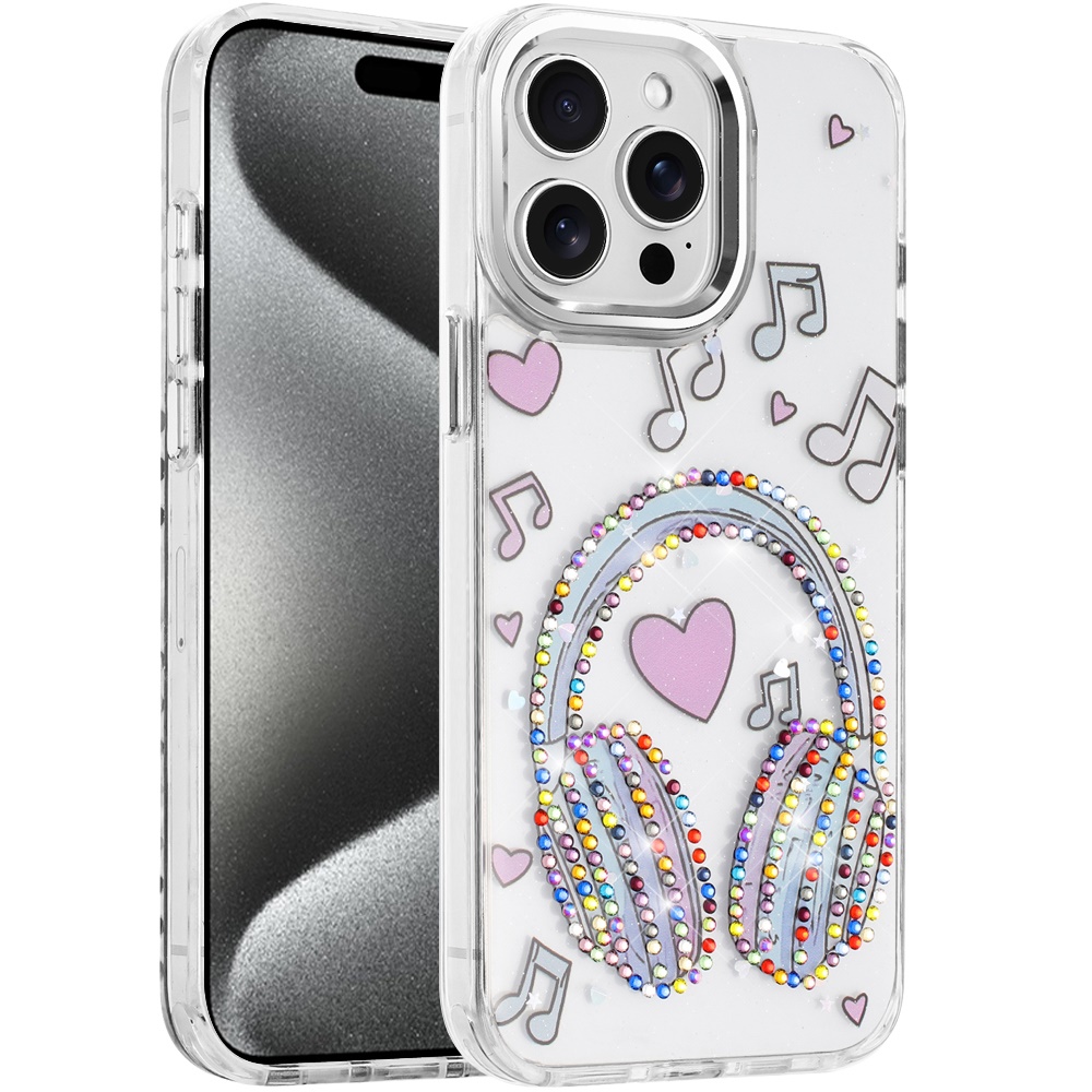 For iP15 Pro Max Resin Epoxy Design Diamond Metal Edged Hybrid Case - G