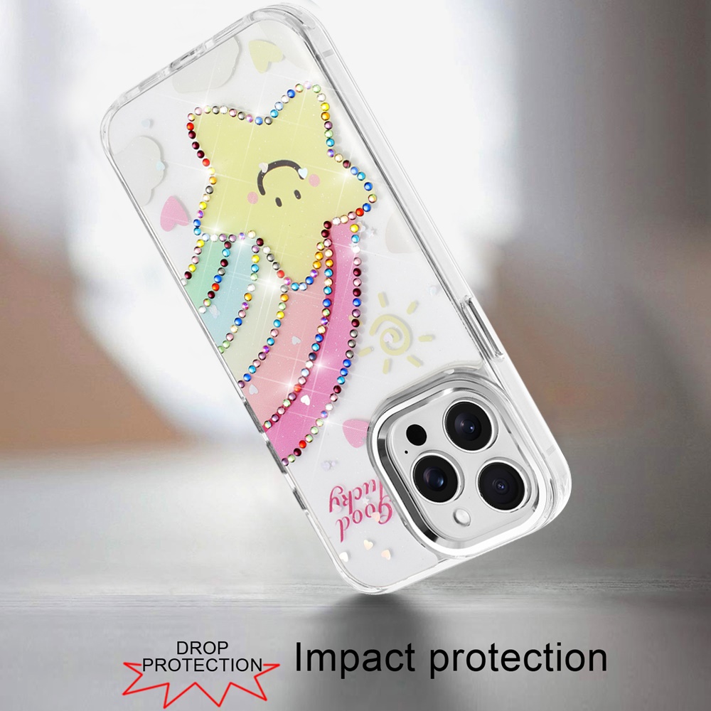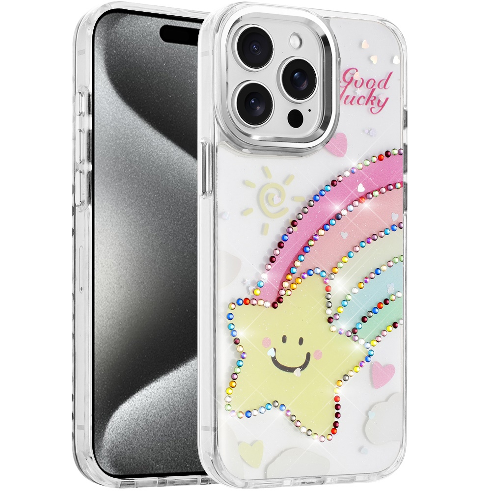 For iP15 Pro Max Resin Epoxy Design Diamond Metal Edged Hybrid Case - H