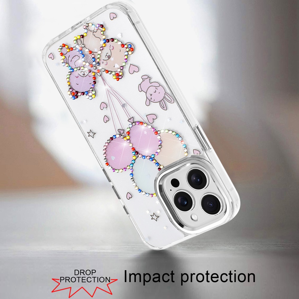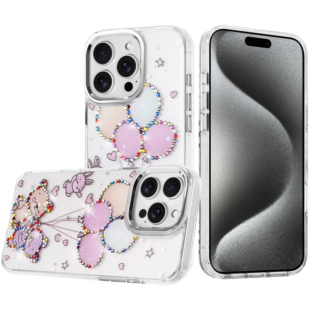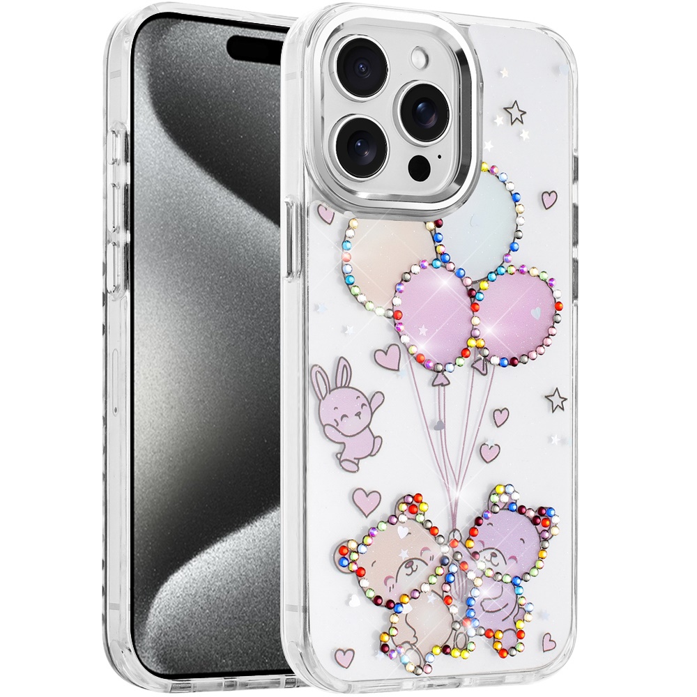 For iP15 Pro Max Resin Epoxy Design Diamond Metal Edged Hybrid Case - K