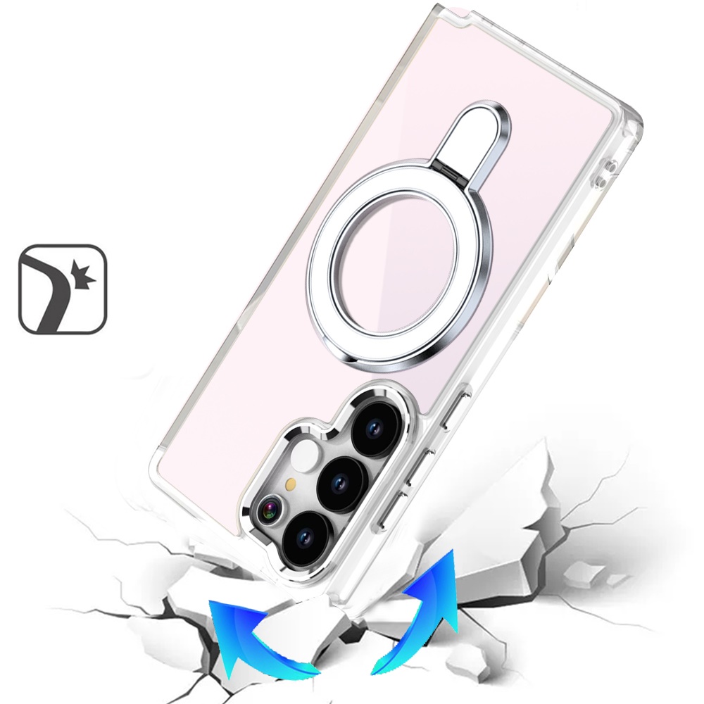 For Samsung s25 Ultra CHROME HQ Rotational Magnetic Ring Hybrid - Clear