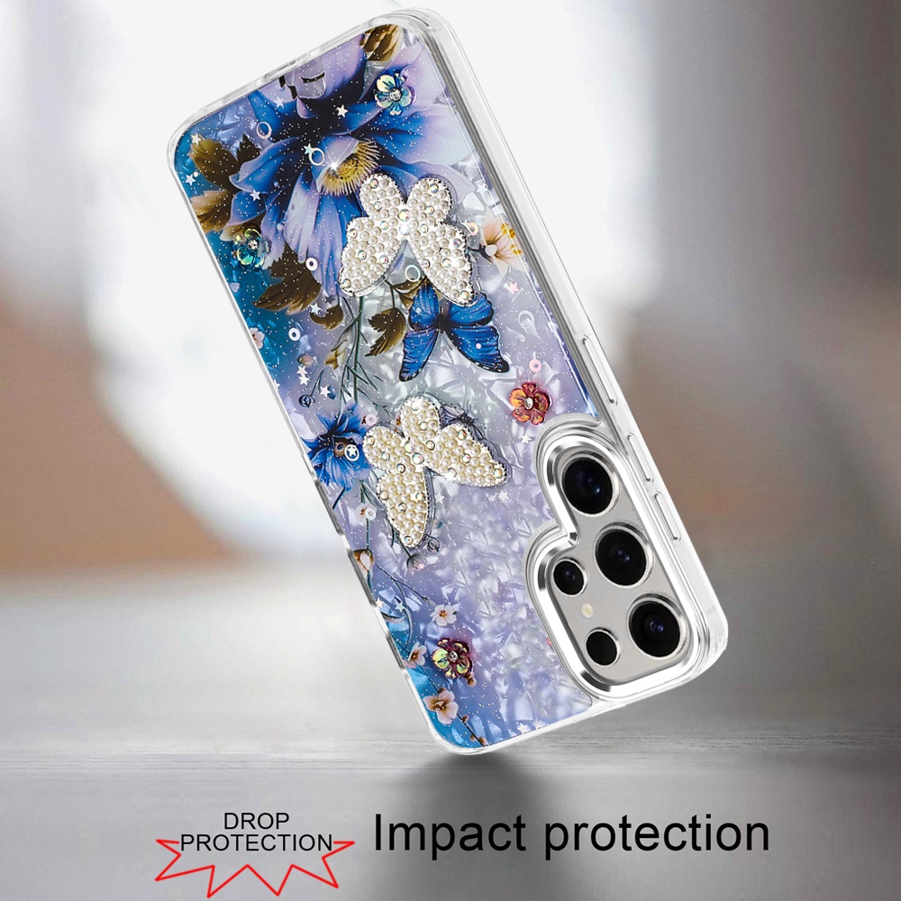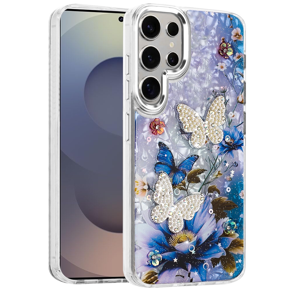For Samsung s25 Ultra Epoxy Glitter Butterfly Ornaments Design HQ Metal Buttons Hybrid - 1