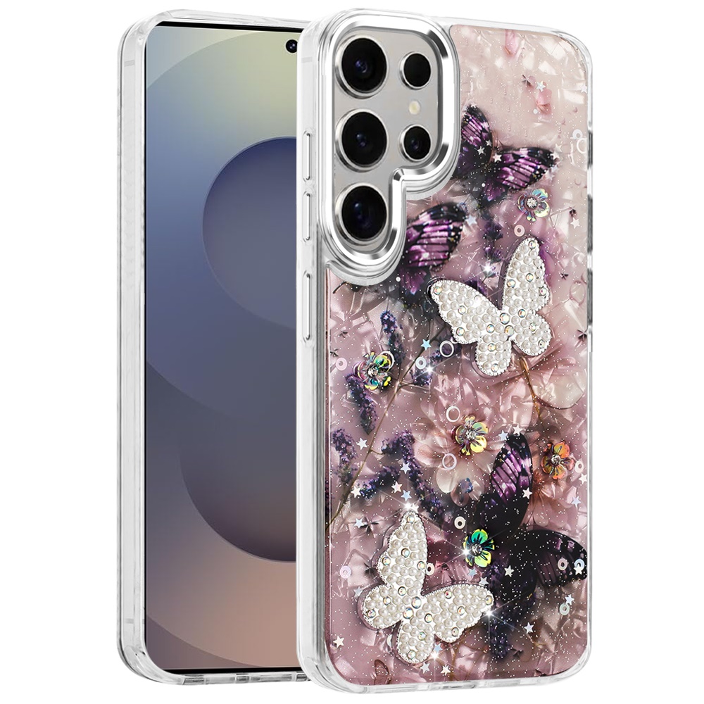 For Samsung s25 Ultra Epoxy Glitter Butterfly Ornaments Design HQ Metal Buttons Hybrid - 5