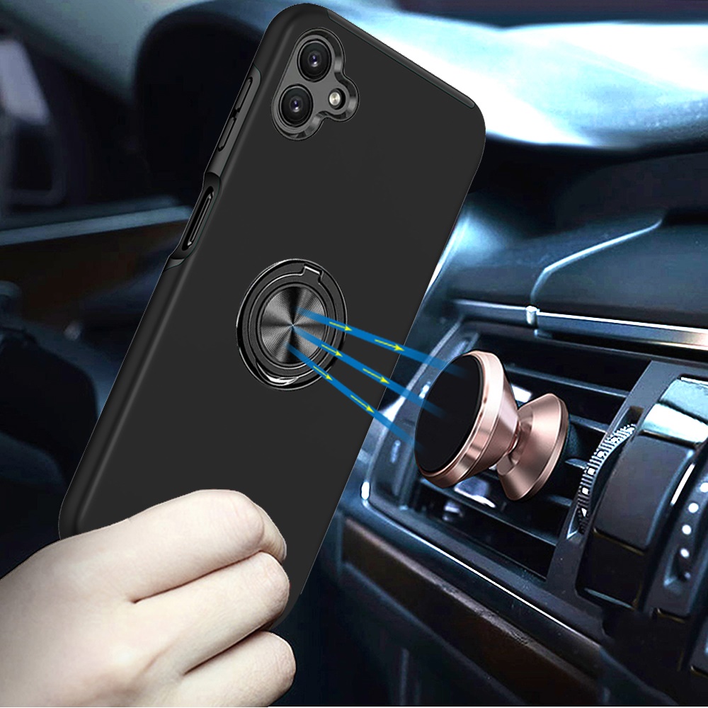 For Samsung Galaxy A07 CHIEF Oil Painted Magnetic Ring Stand Hybrid Case Cover - Black