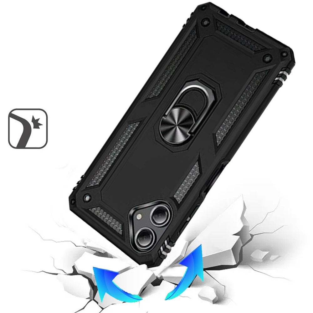 For Samsung Galaxy A07 Ring Magnetic Kickstand Hybrid Case Cover - Black