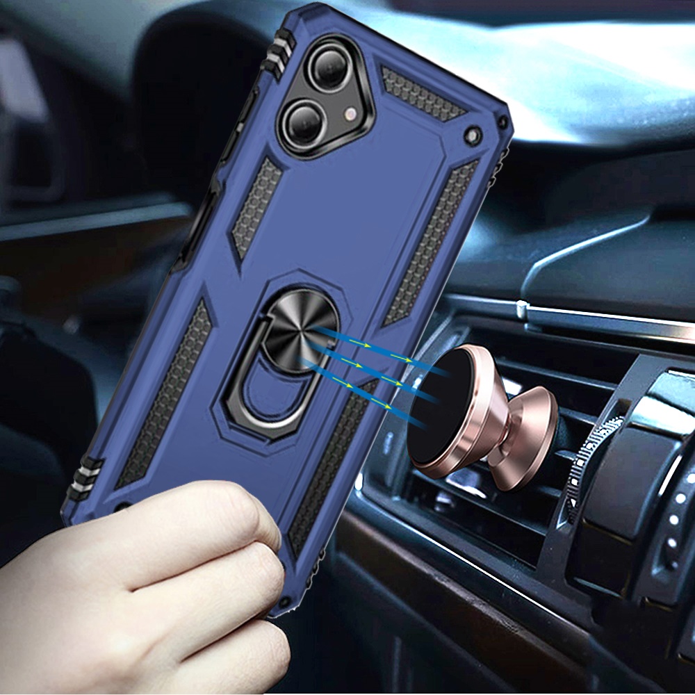 For Samsung Galaxy A07 Ring Magnetic Kickstand Hybrid Case Cover - Blue