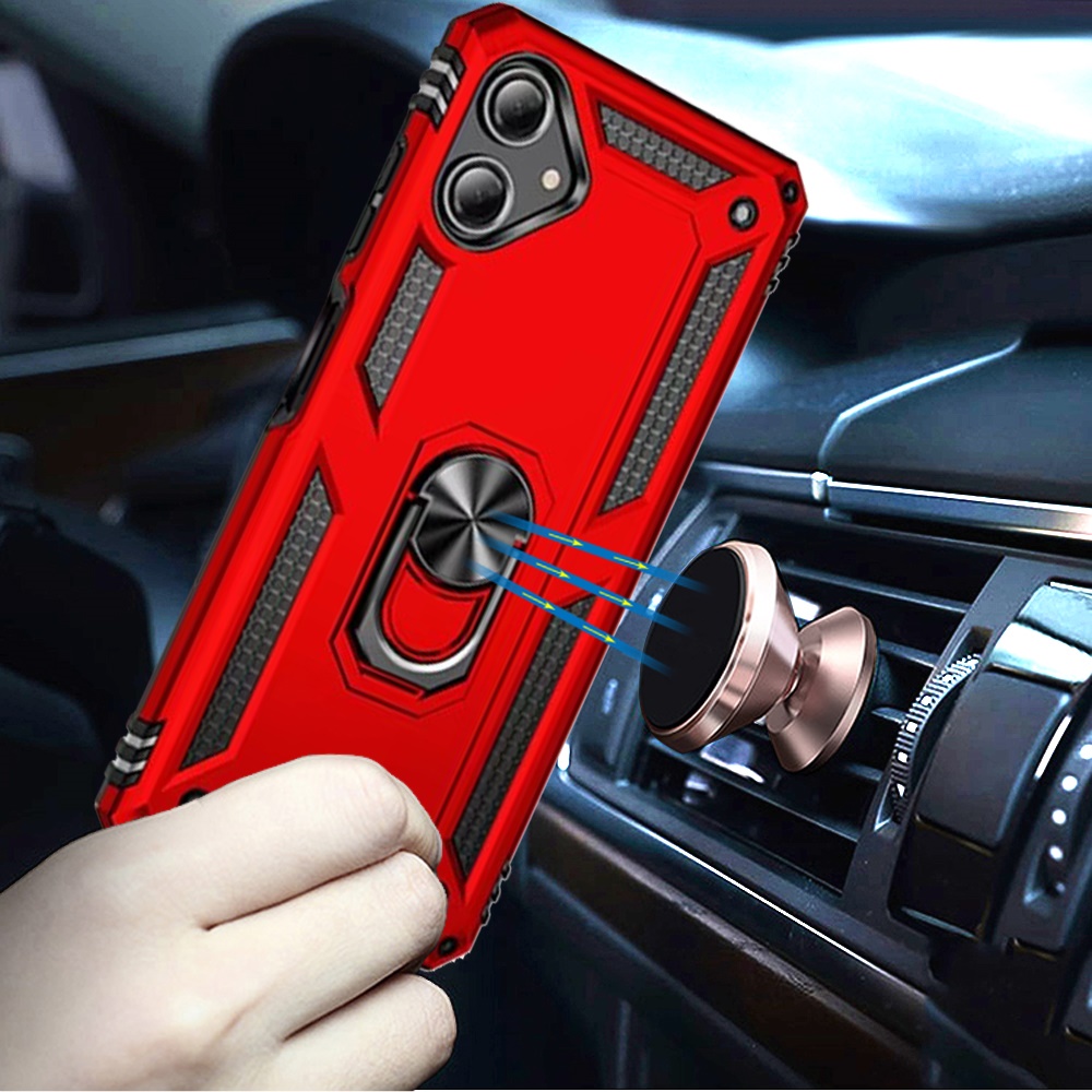 For Samsung Galaxy A07 Ring Magnetic Kickstand Hybrid Case Cover - Red