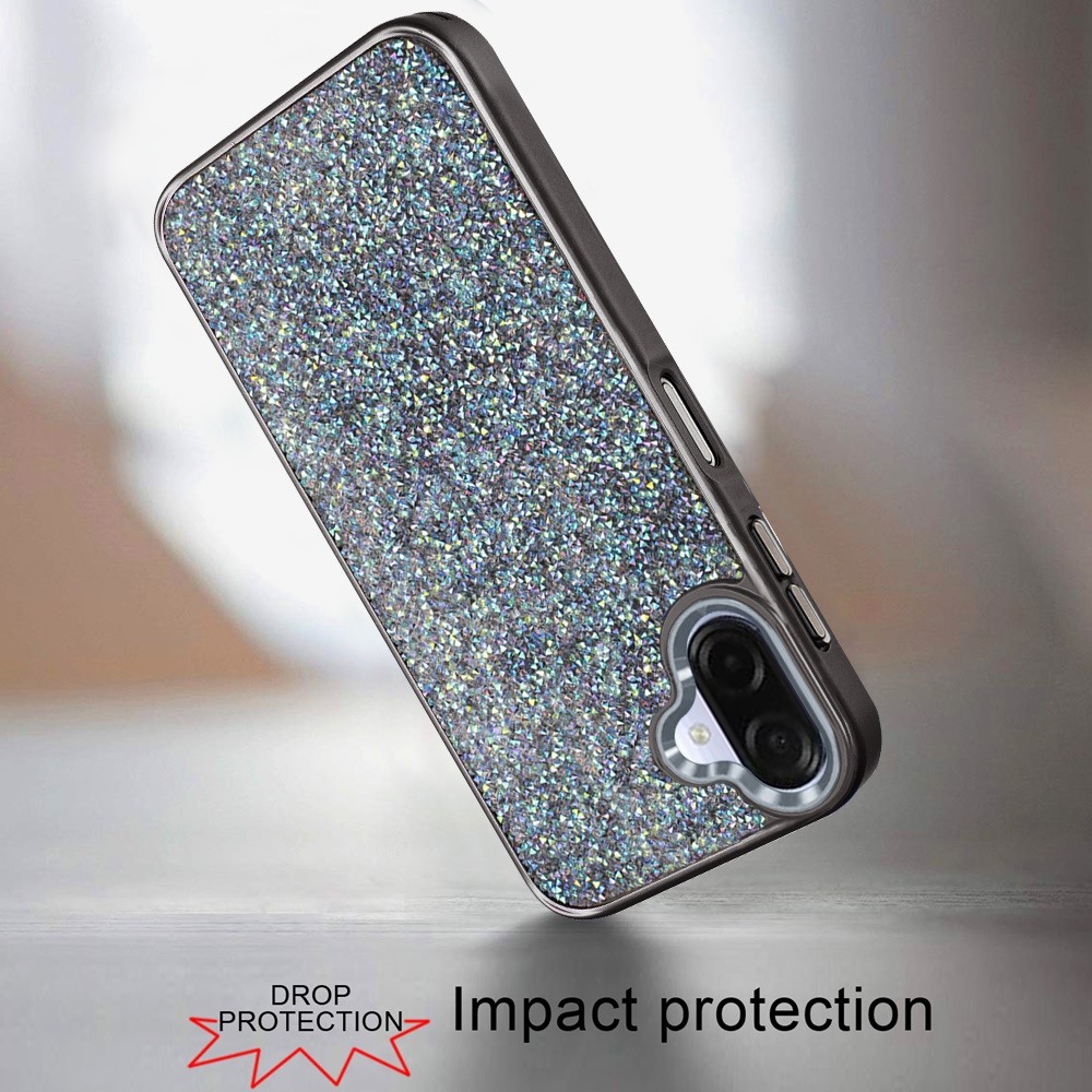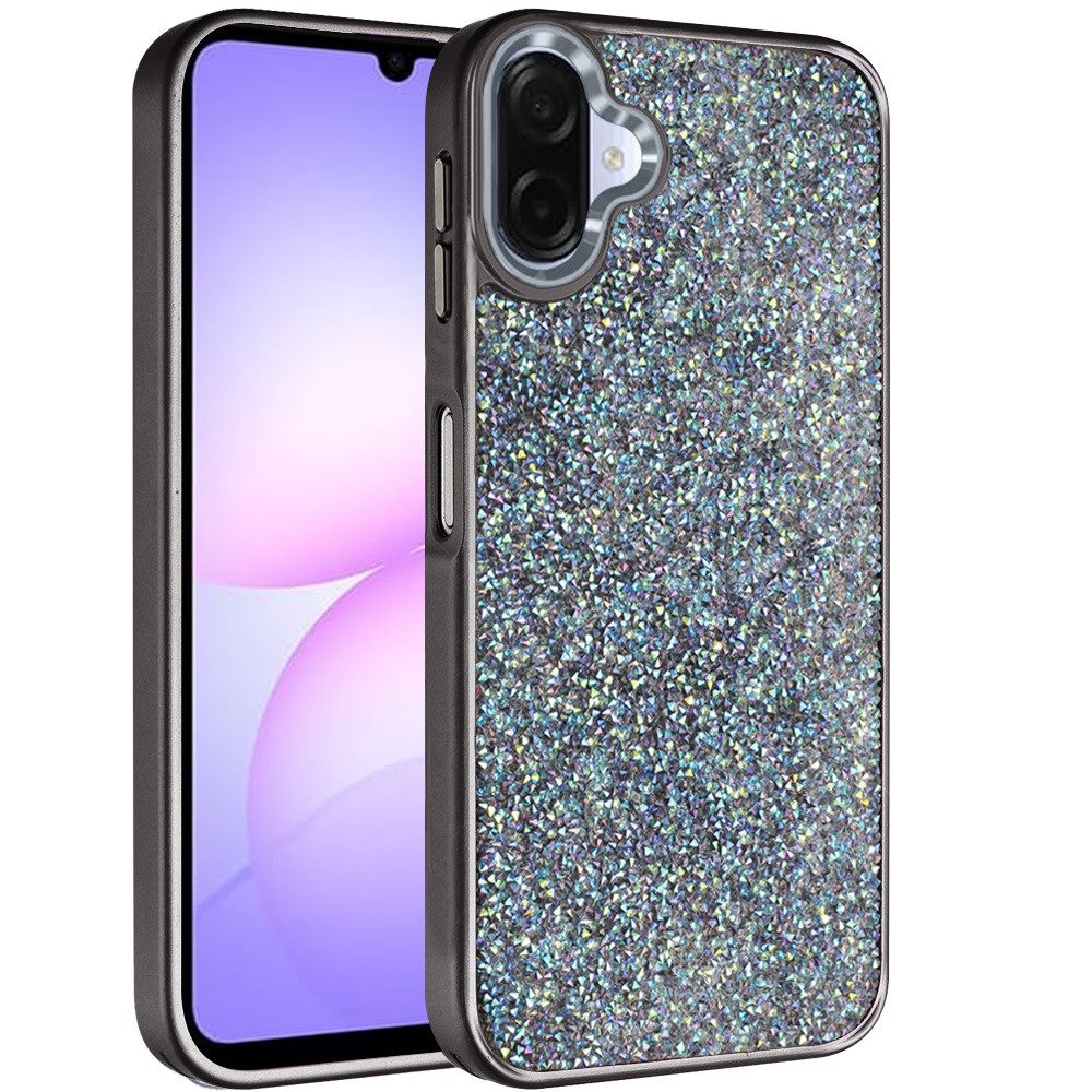 For Samsung Galaxy A07 Crystal Glass Diamond with Metallic Buttons and Edges Hybrid Case - Black