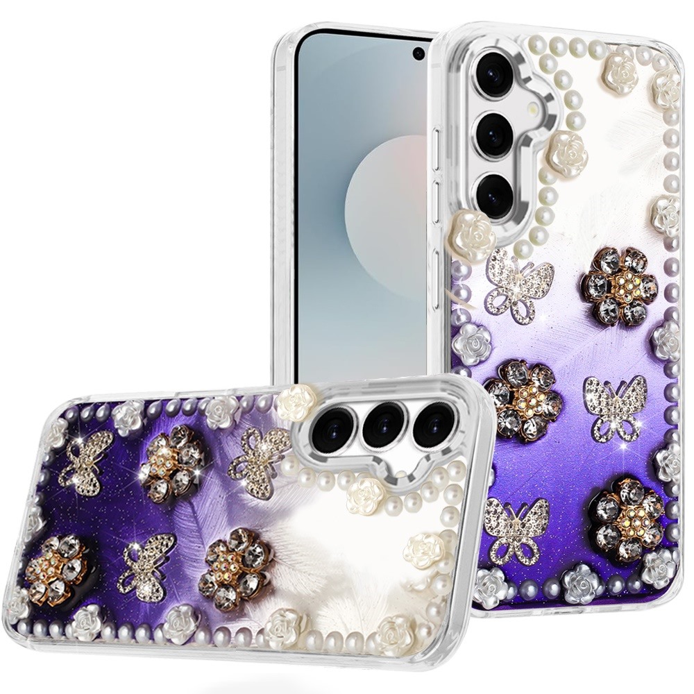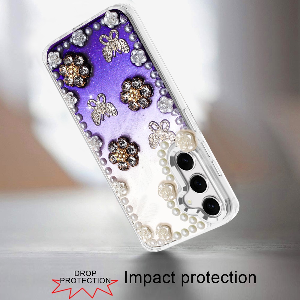 For Samsung s25 FE Pearls Epoxy Glitter Ornaments Design Chrome Edged Case - 3