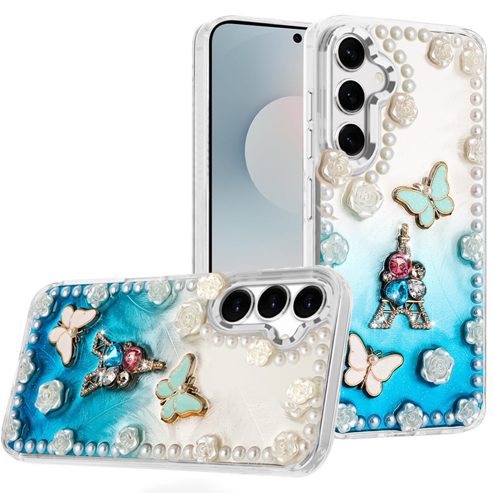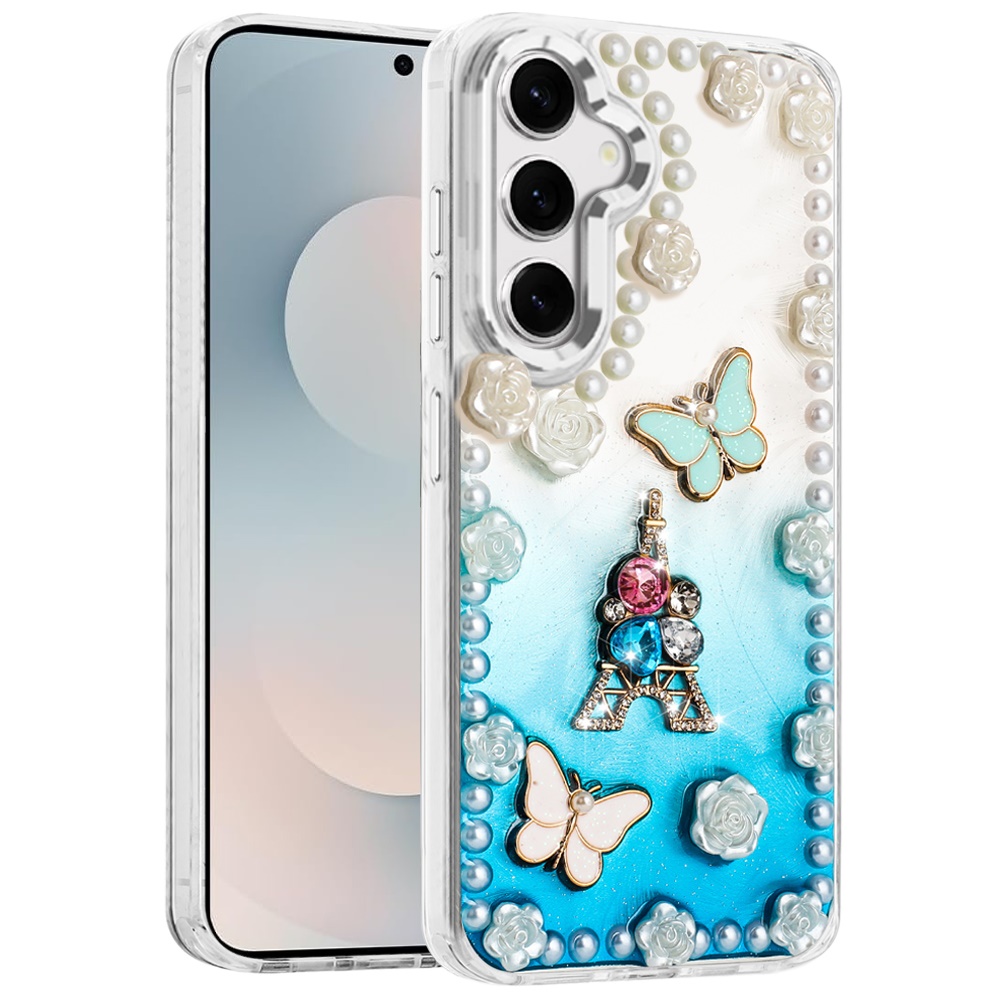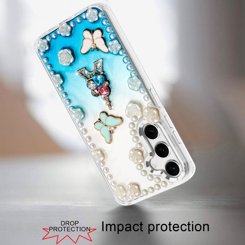 For Samsung s25 FE Pearls Epoxy Glitter Ornaments Design Chrome Edged Case - 4