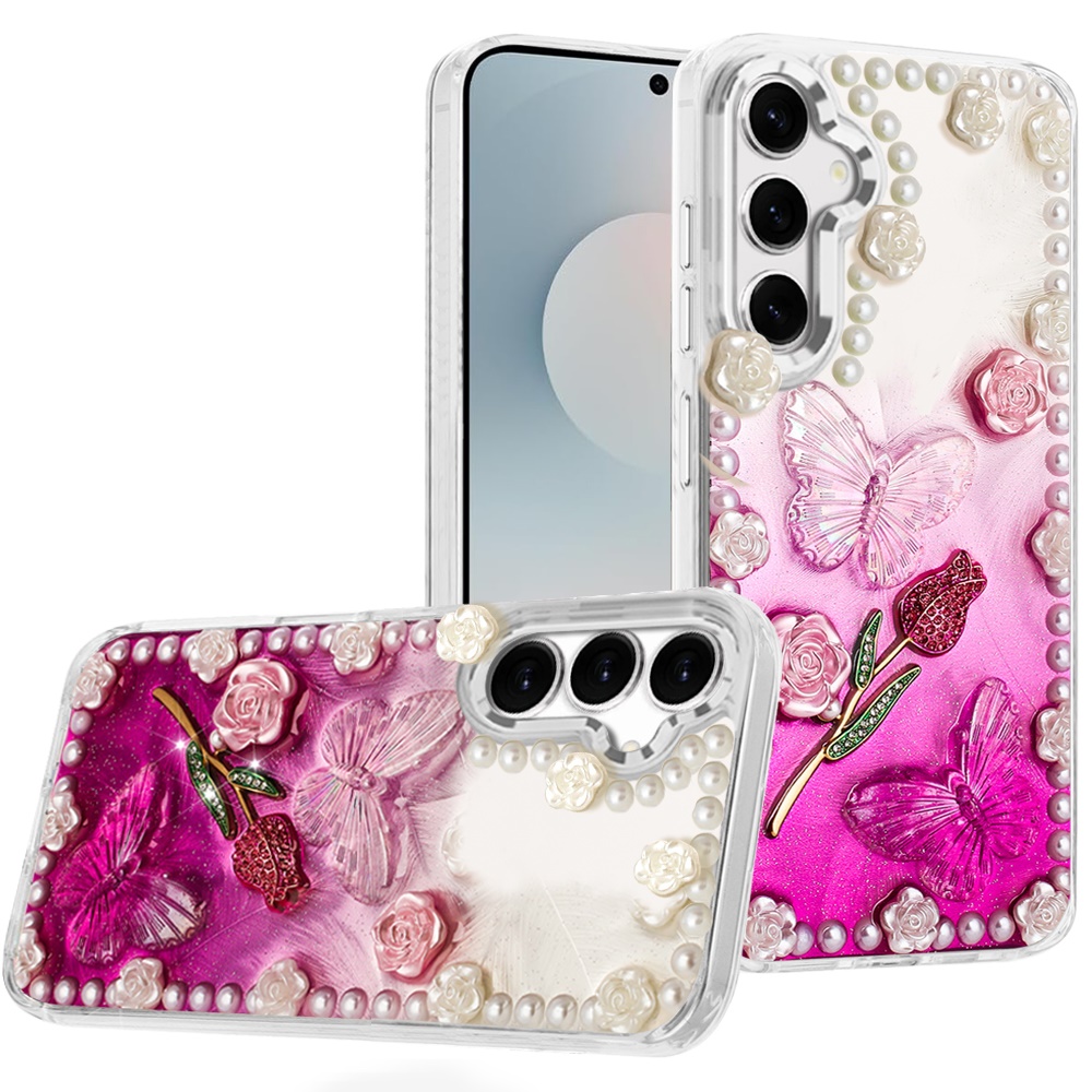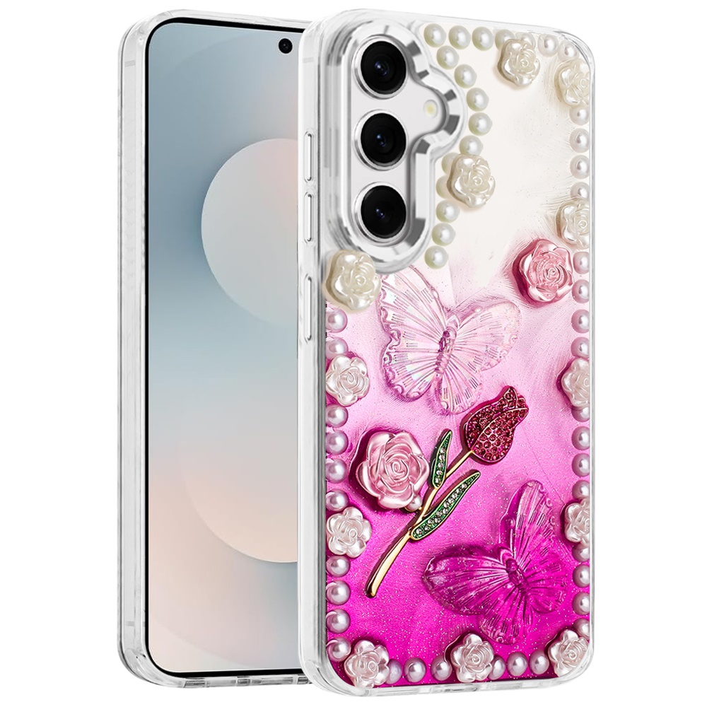 For Samsung s25 FE Pearls Epoxy Glitter Ornaments Design Chrome Edged Case - 7