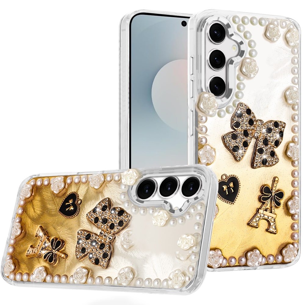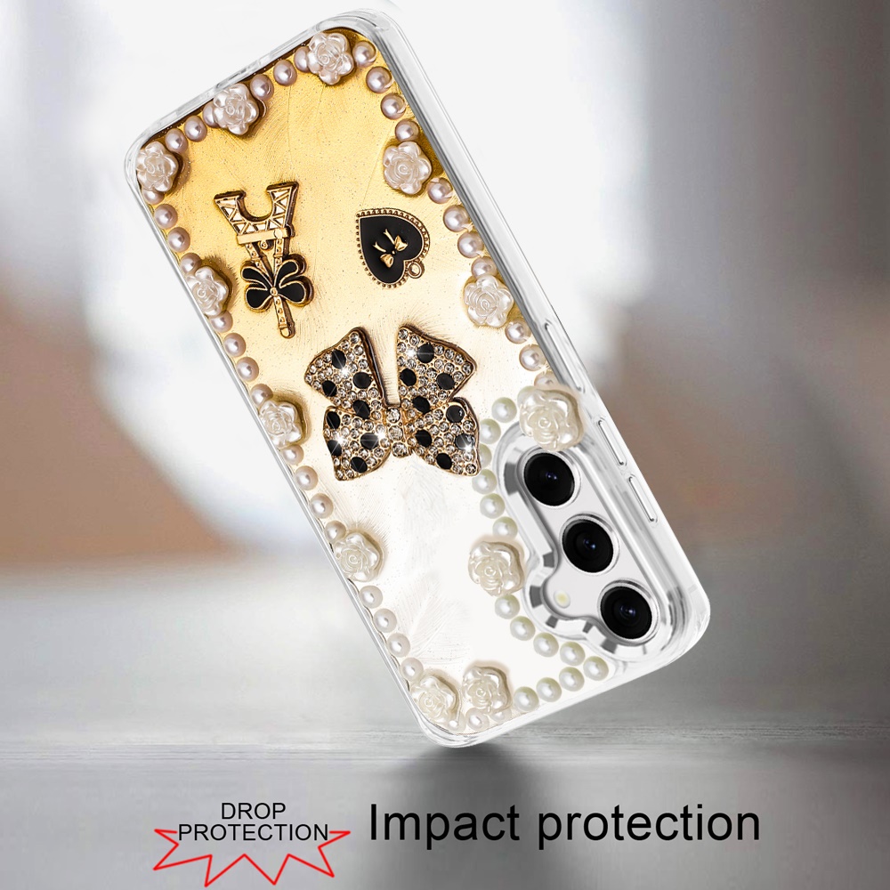 For Samsung s25 FE Pearls Epoxy Glitter Ornaments Design Chrome Edged Case - 9