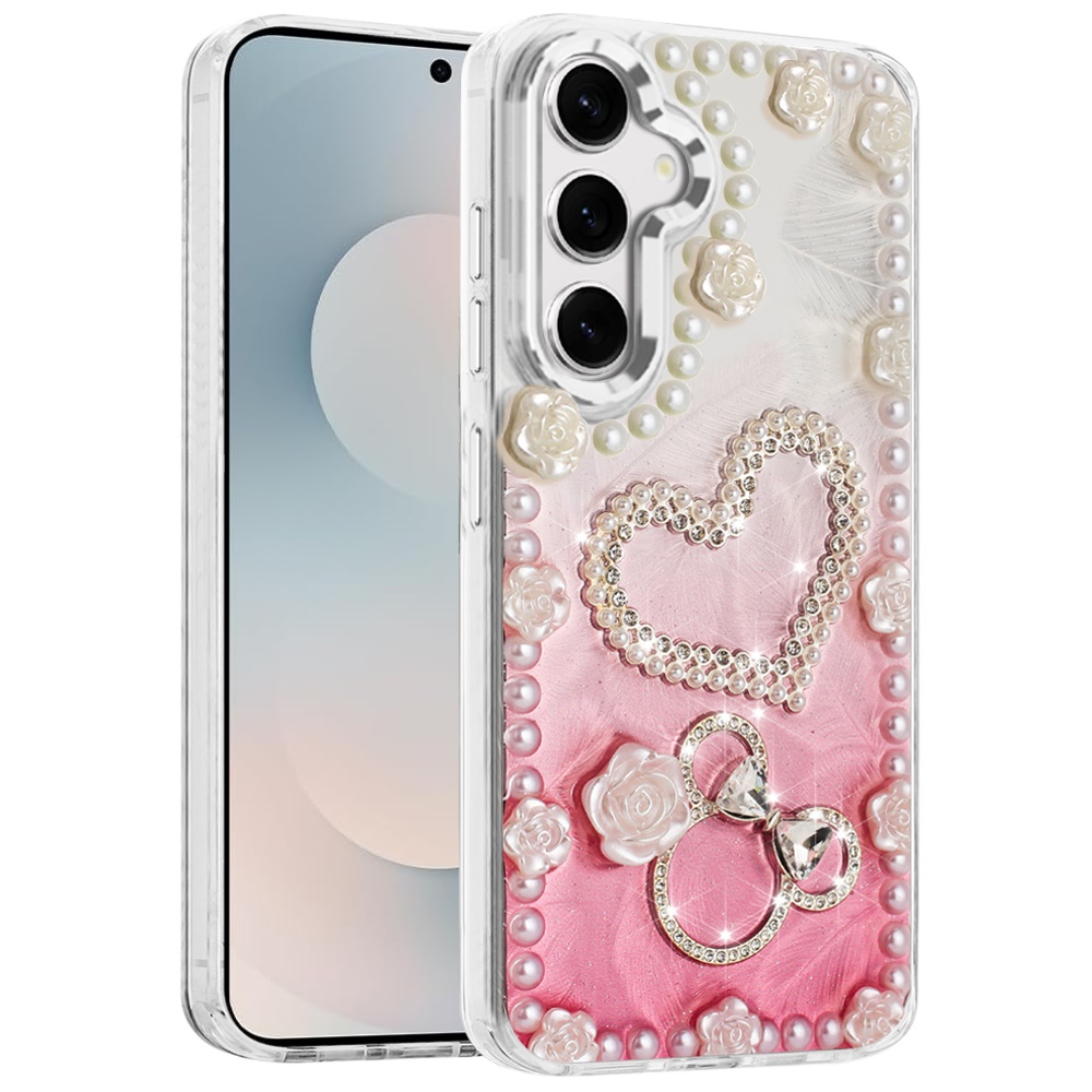 For Samsung s25 FE Pearls Epoxy Glitter Ornaments Design Chrome Edged Case - 10