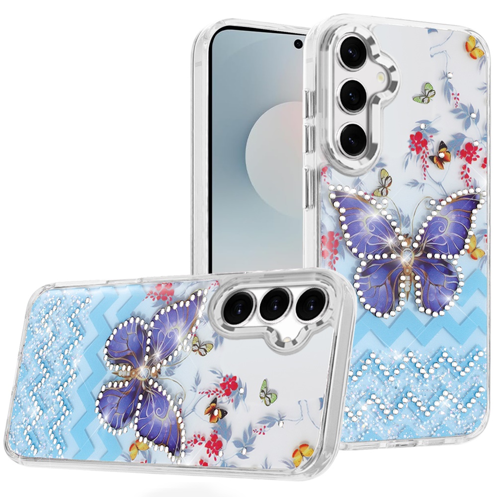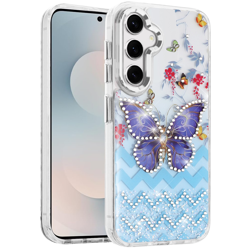 For Samsung s25 FE Resin Epoxy Design Diamond Metal Edged Hybrid Case - D