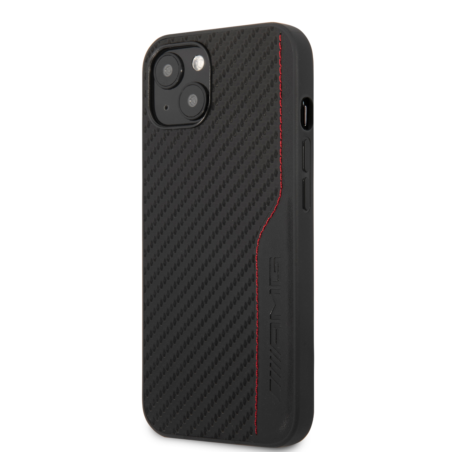 For iPhone 13 - AMG HC PU CARBON & LEATHER & RED STITCHING - Black (AMG#121)