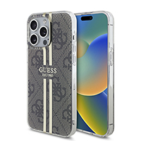 For iPhone 14 Pro Max - GUESS HC O IML 4G GOLD STRIPE - Brown (GUESS#168)