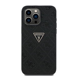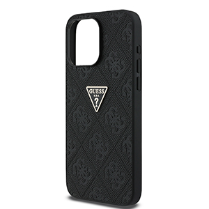 For iPhone 15 Pro Max - GUESS HC O GRAINED PU HS 4G AND TRIANGLE LOGO - Black (GUESS#197)