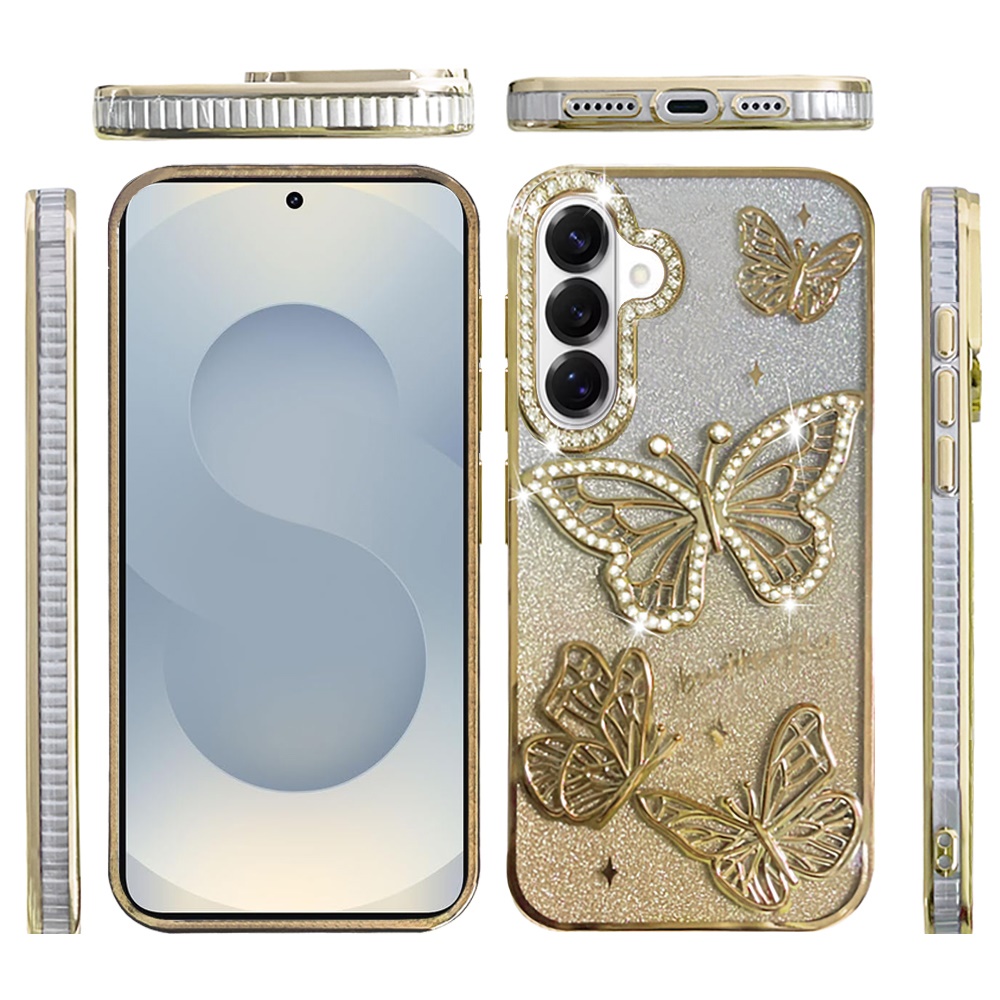 For Samsung s26 Butterfly Freedom Shimmer Glitter Thick TPU Case Cover - Gold