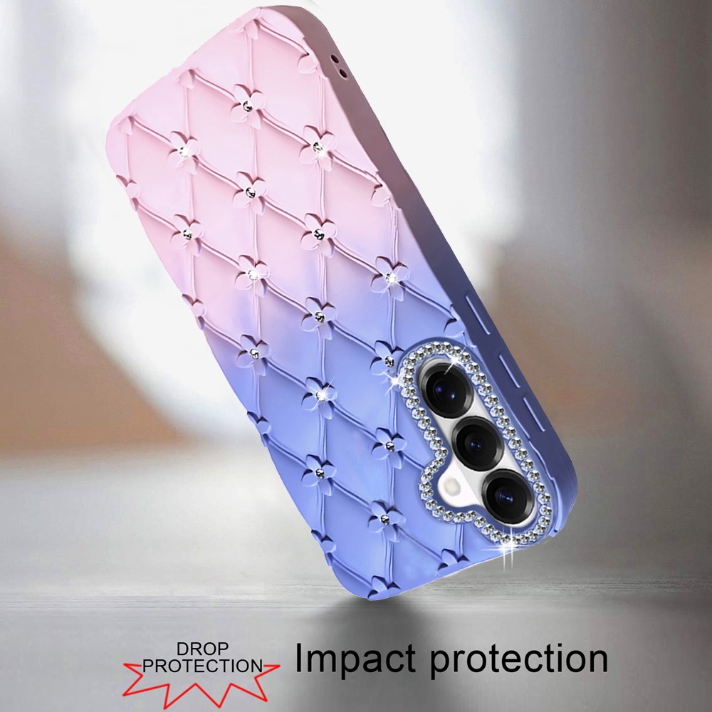 For Samsung s26 Floral Joy Glitter Shimmer Leather Feel Thick TPU Case - Light Blue/Light Pink