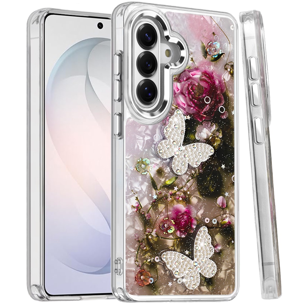 For Samsung s26 Epoxy Glitter Butterfly Ornaments Design HQ Metal Buttons Hybrid - 3