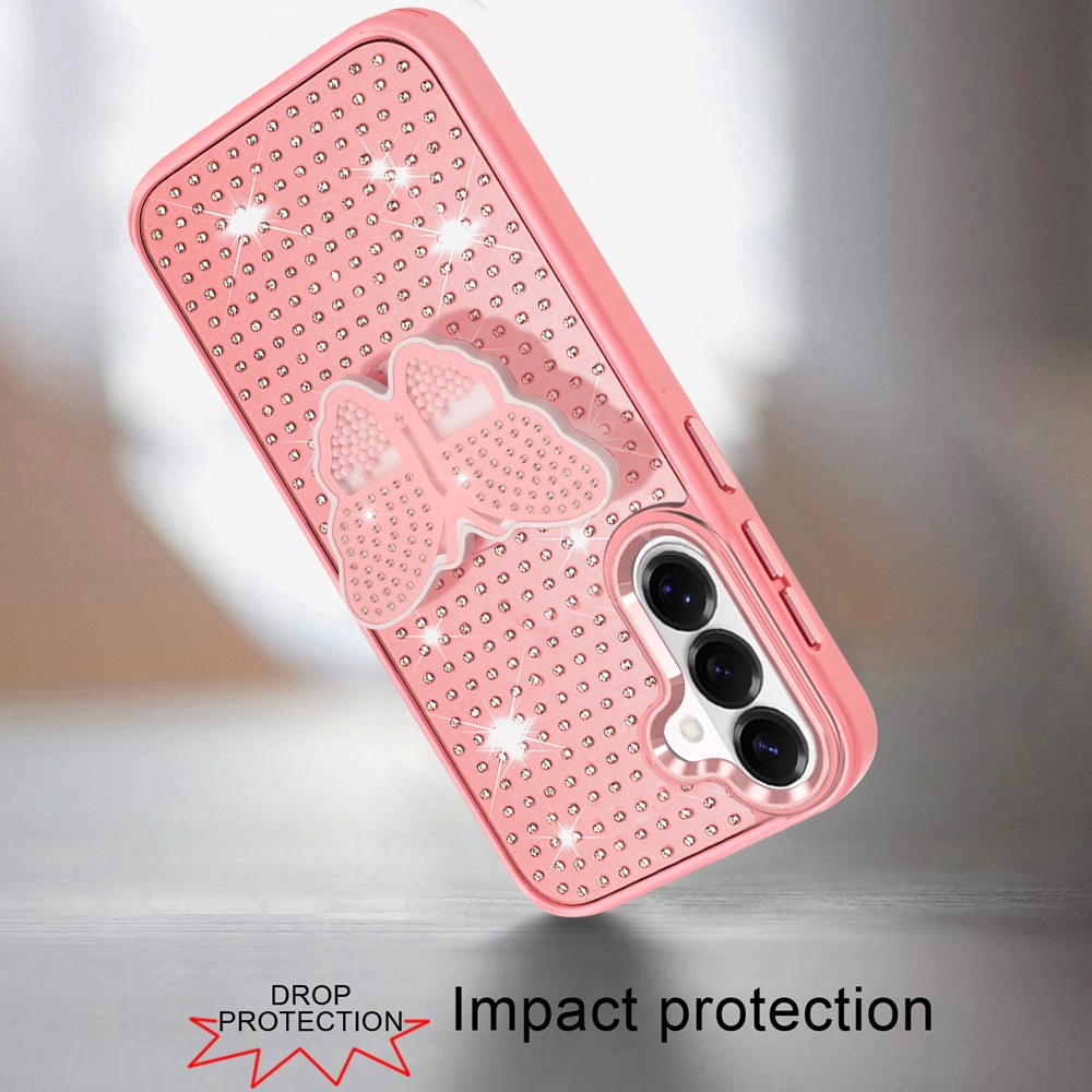 For Samsung s26 Butterfly Moveable Grip Stand With Small Diamonds Meta Buttons HQ Hybrid - Pink