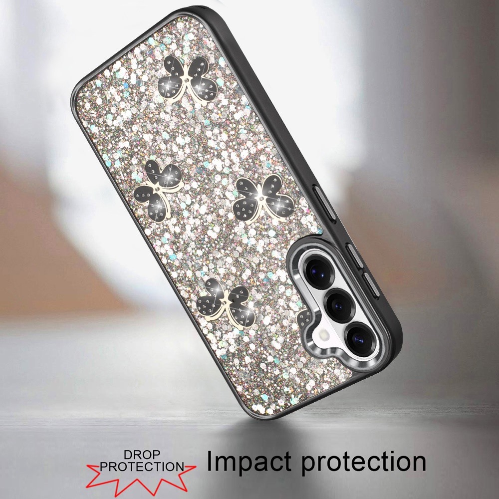For Samsung s26 Cute Butterfly Ornaments Diamonds Shimmer Matching Metallic HQ Hybrid - Black
