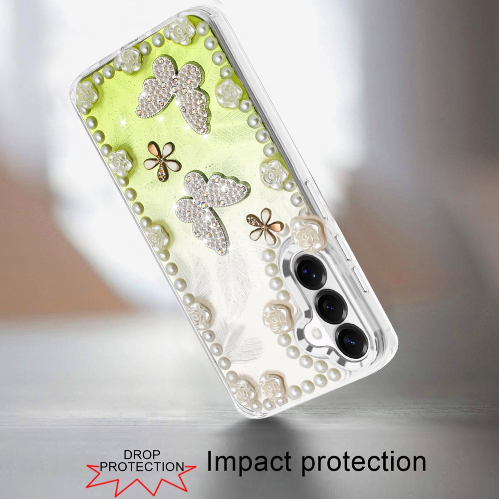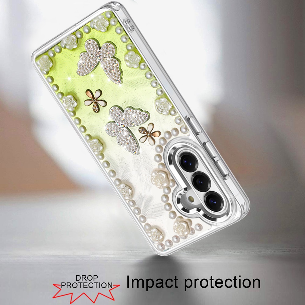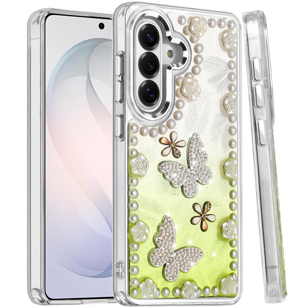 For Samsung s26 Pearls Epoxy Glitter Ornaments Design Chrome Edged Case - 1