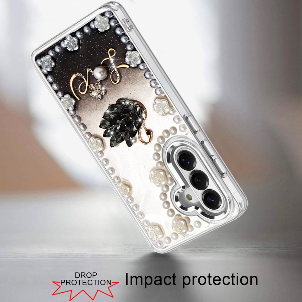 For Samsung s26 Pearls Epoxy Glitter Ornaments Design Chrome Edged Case - 2