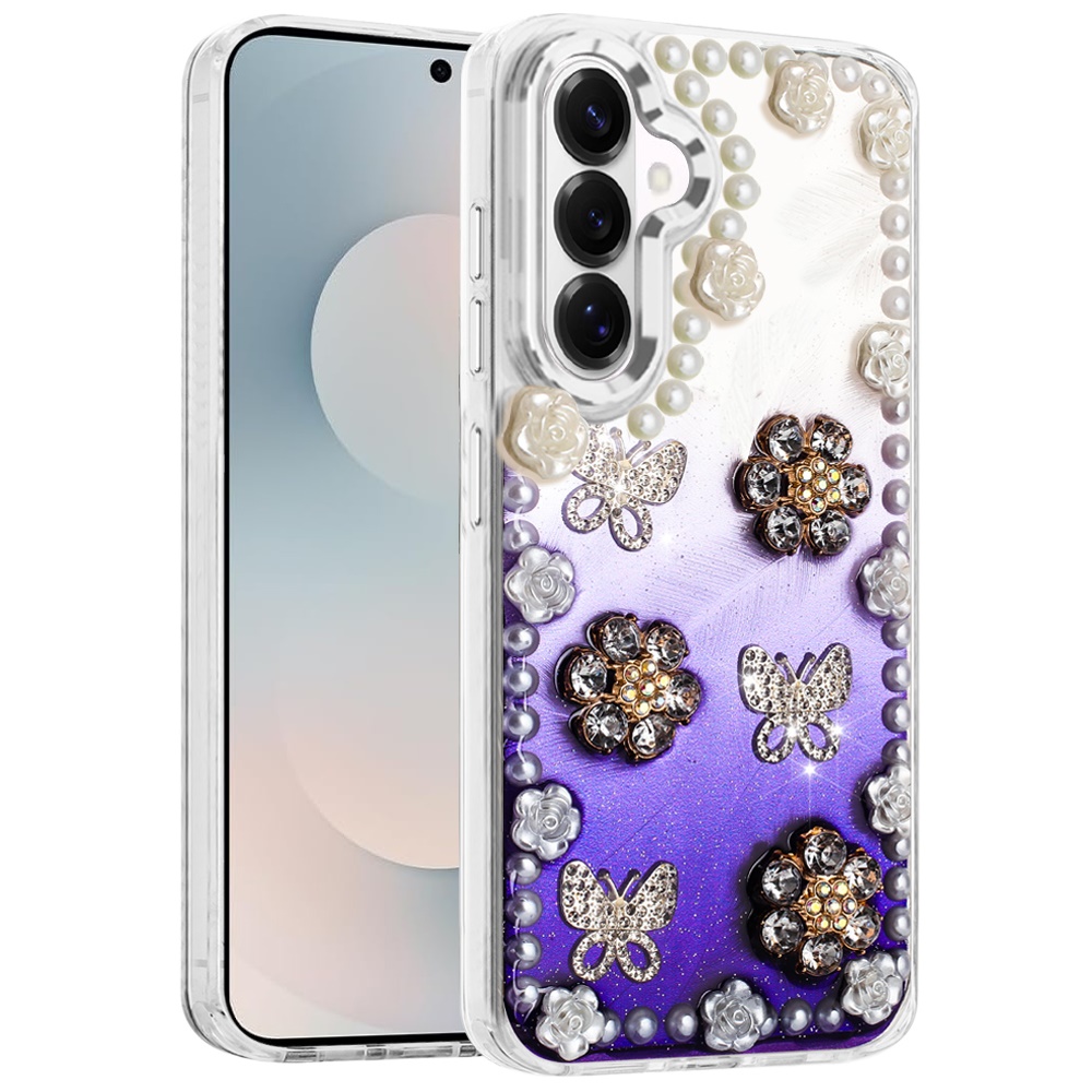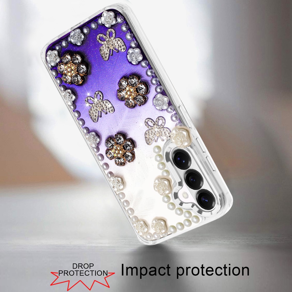 For Samsung s26 Pearls Epoxy Glitter Ornaments Design Chrome Edged Case - 3