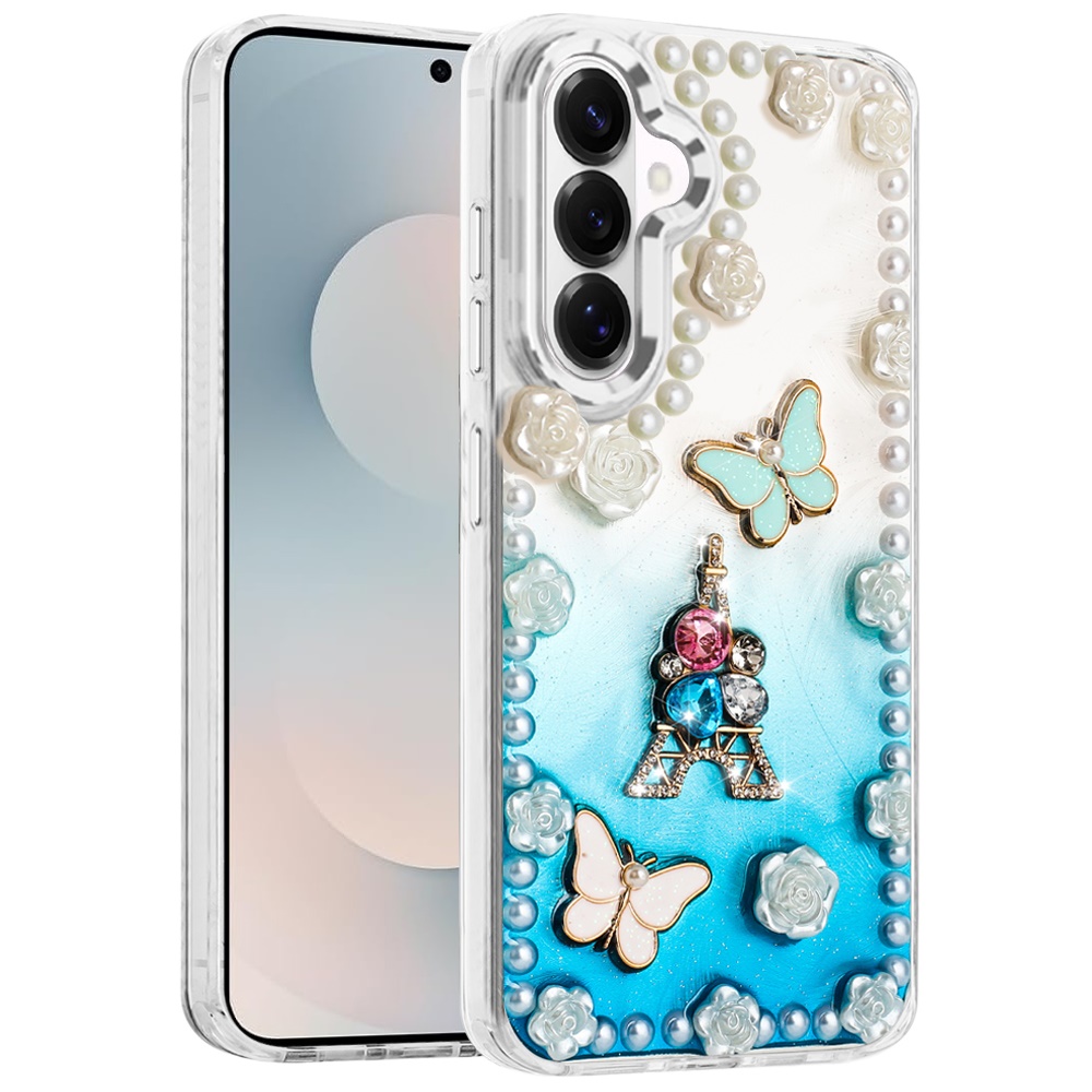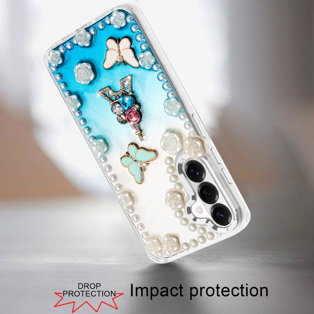 For Samsung s26 Pearls Epoxy Glitter Ornaments Design Chrome Edged Case - 4